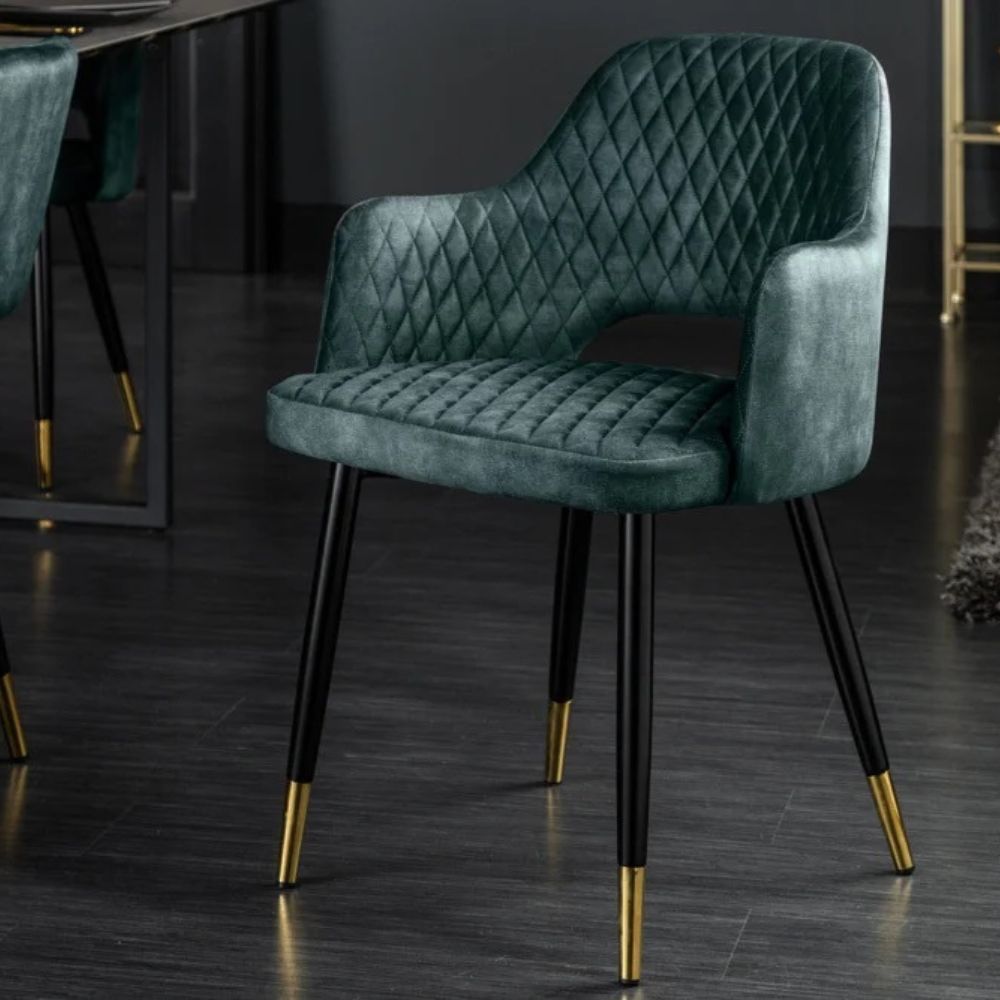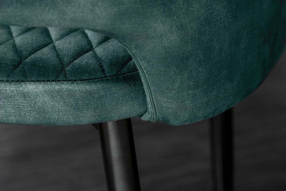 Design Stuhl FRANCE Samt petrol Ziersteppung Armlehnen Esszimmerstuhl Retro
