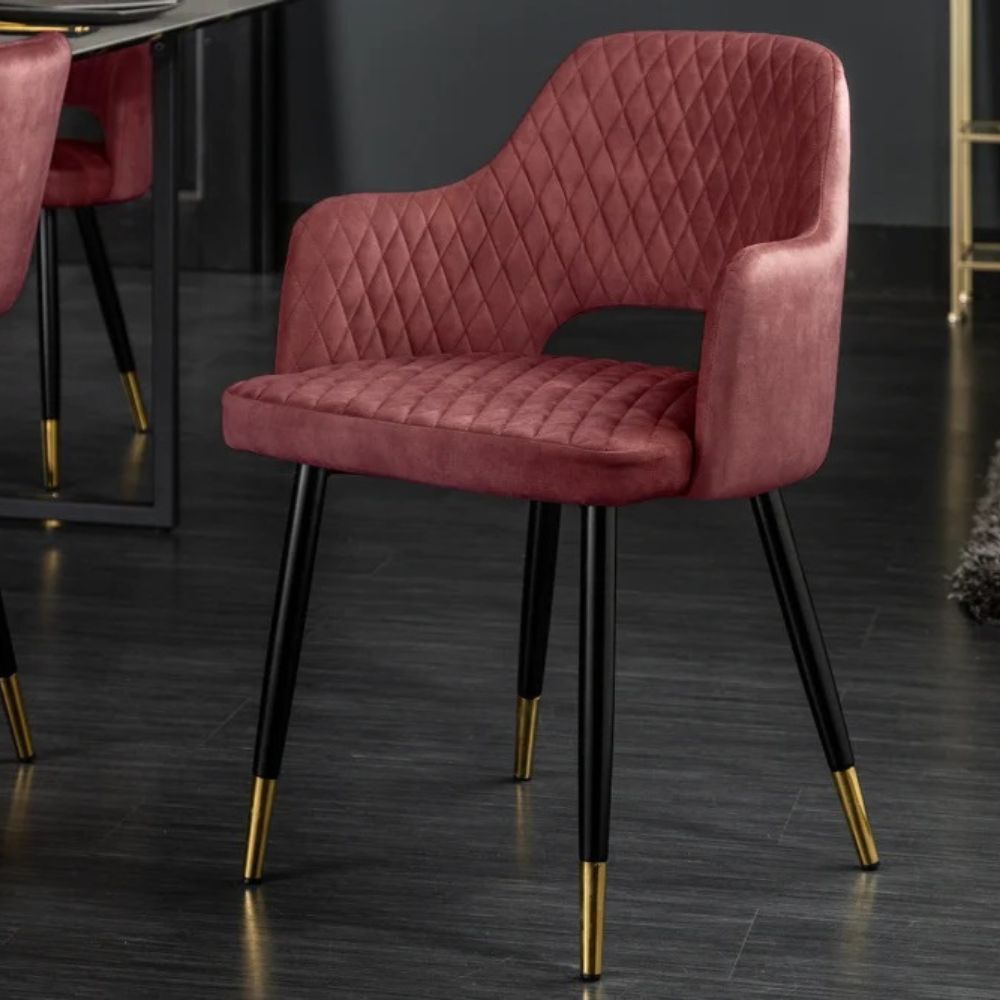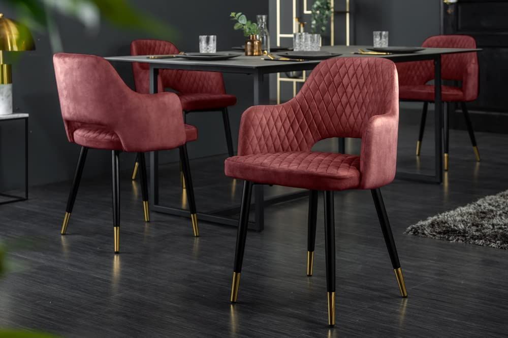 Design Stuhl FRANCE Samt rot Ziersteppung Armlehnen Esszimmerstuhl Retro