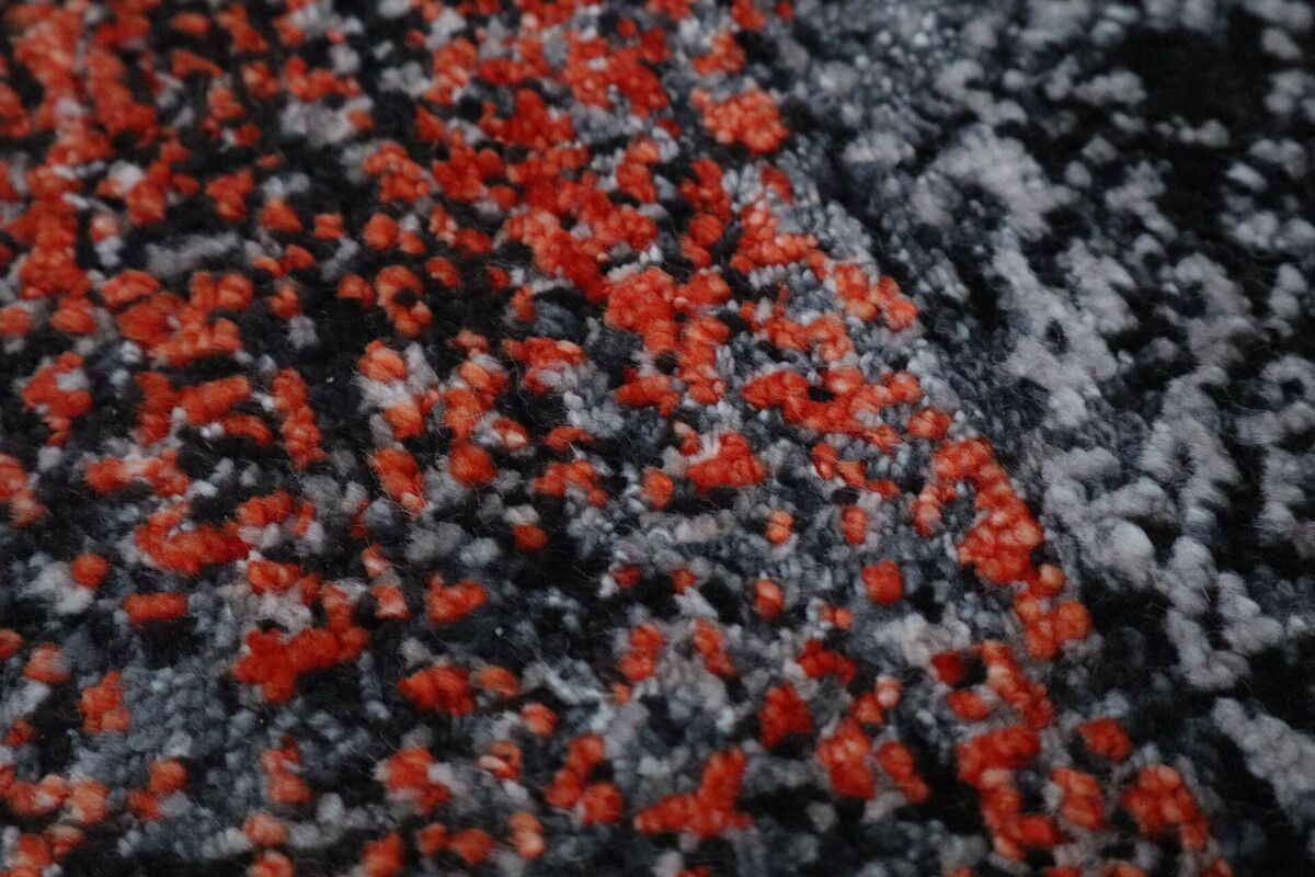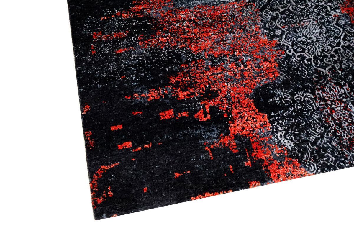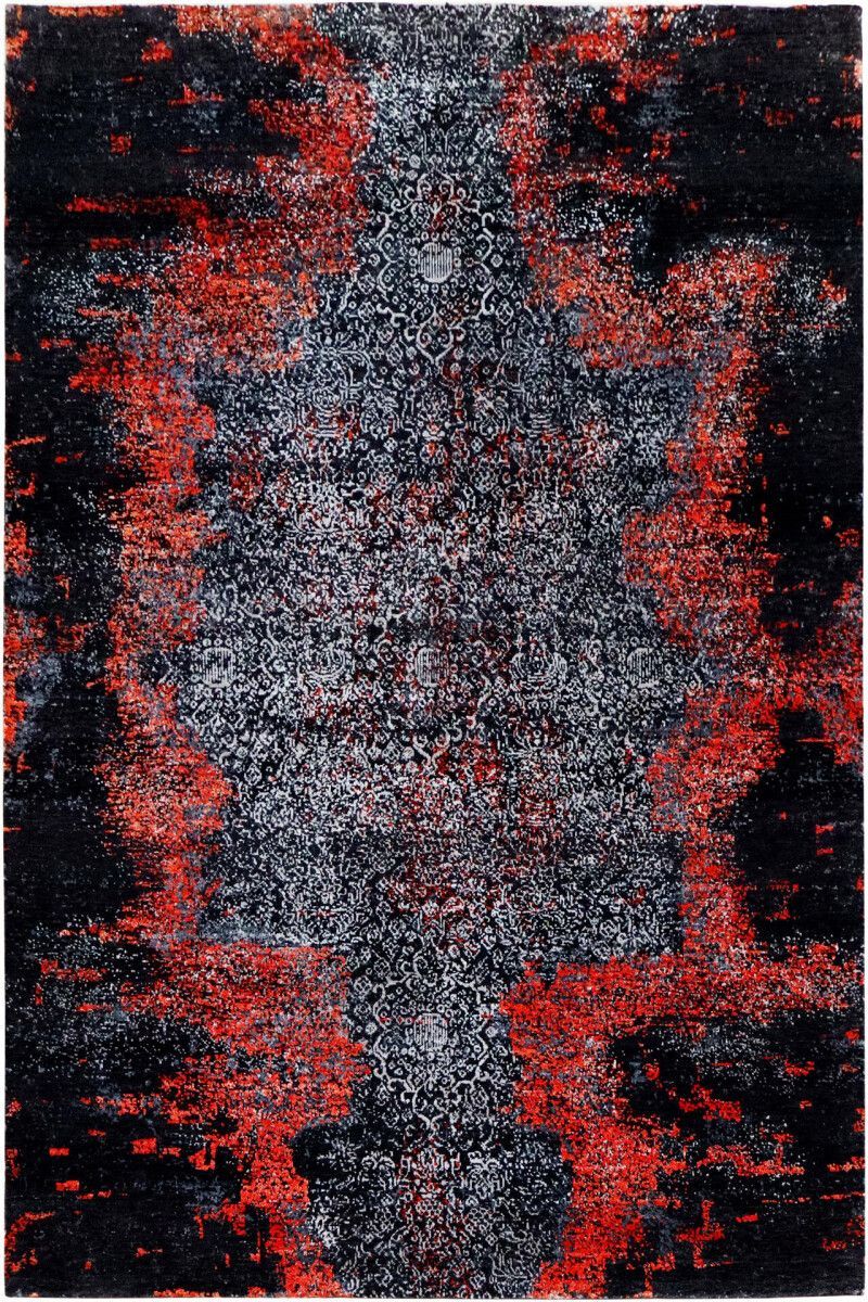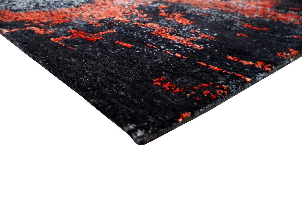 Design Teppich Lava 170x240 cm Wolle Bambus Seide Handgeknüpft orange rot grau