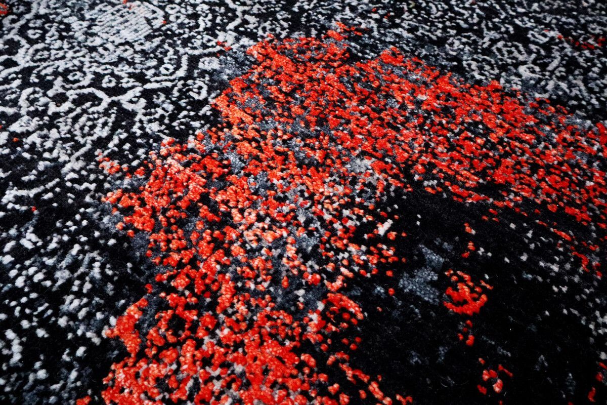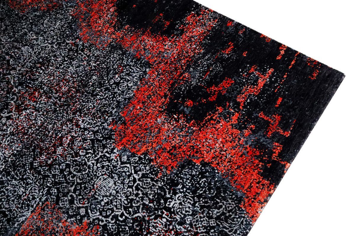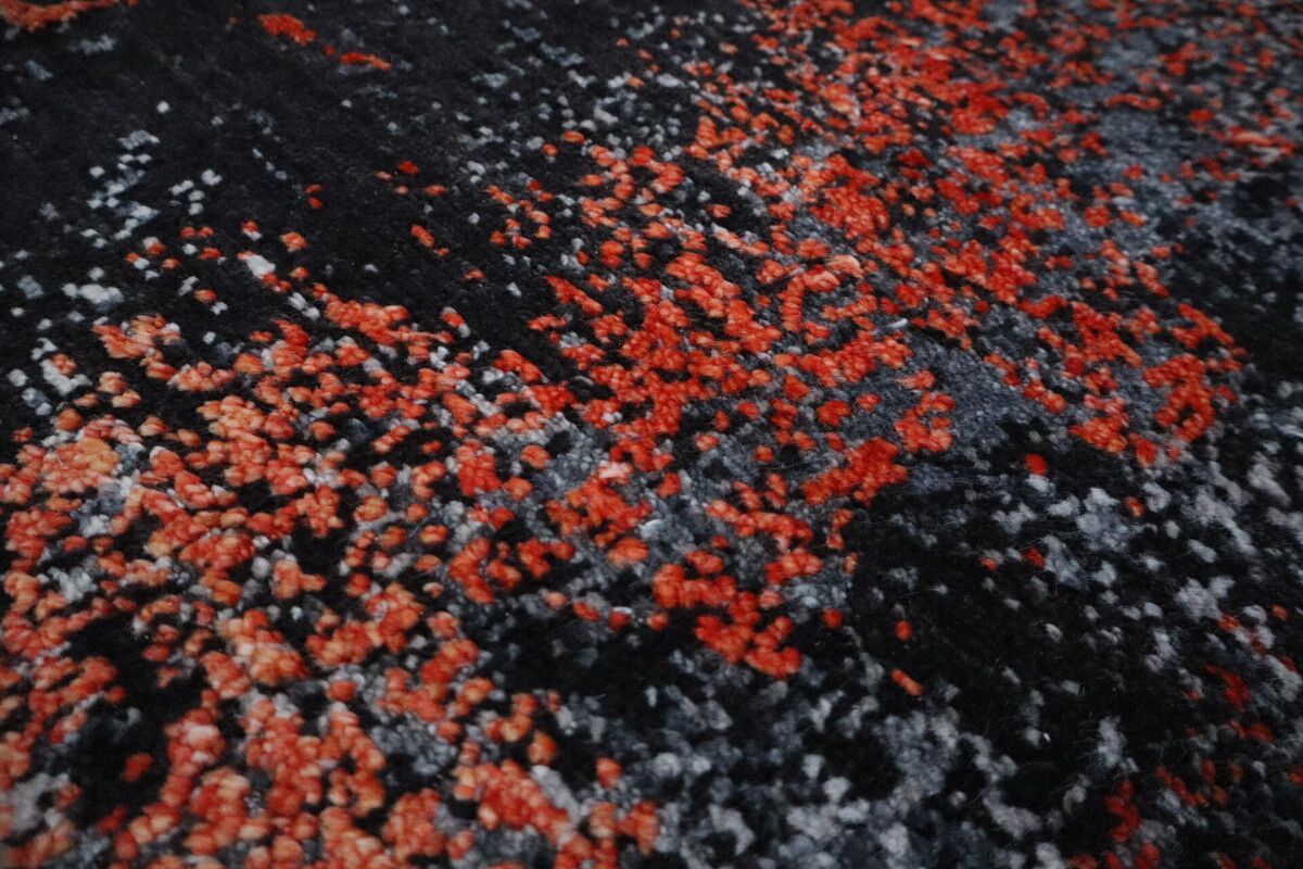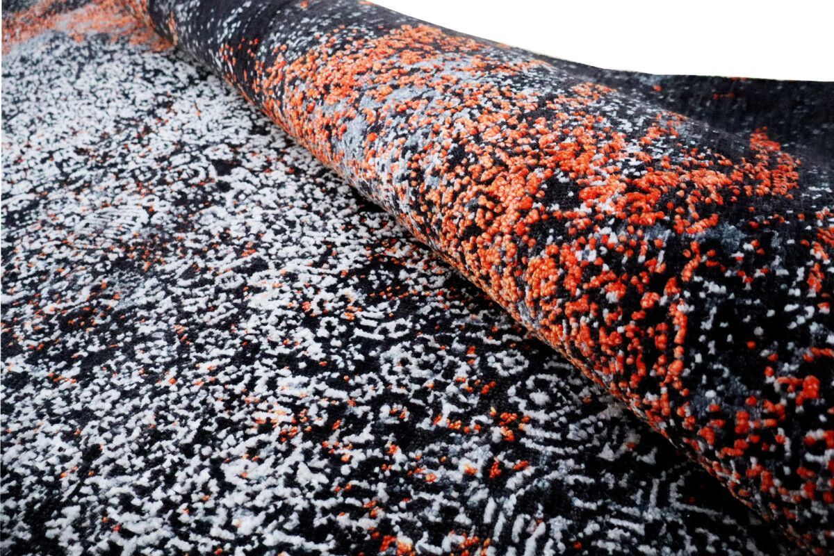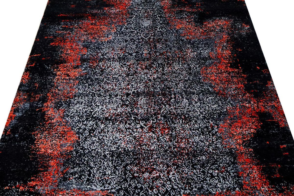 Design Teppich Lava 170x240 cm Wolle Bambus Seide Handgeknüpft orange rot grau