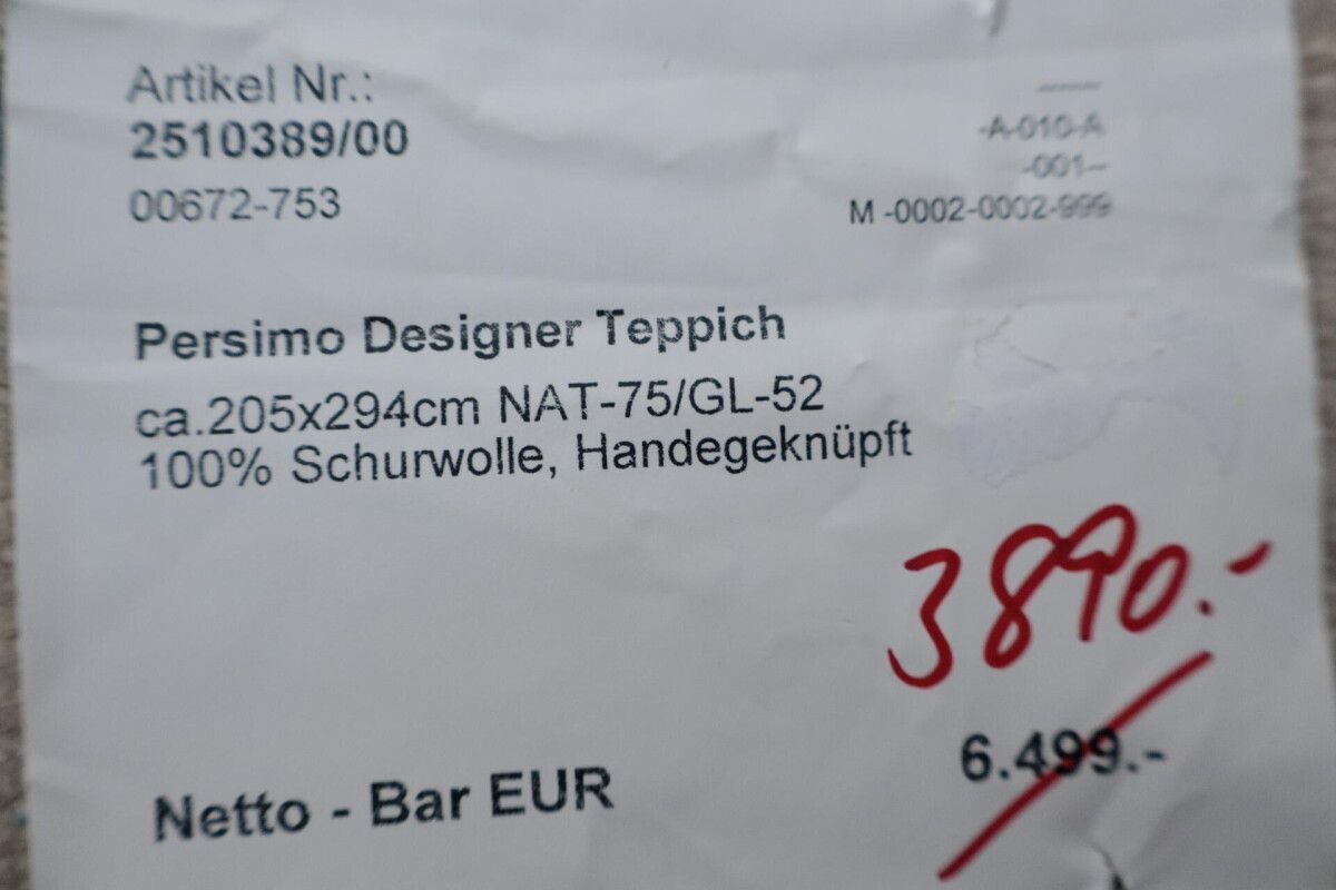 Design Teppich Persimo Orient fein Handgeknüpft 100% Wolle 200x300 cm natur