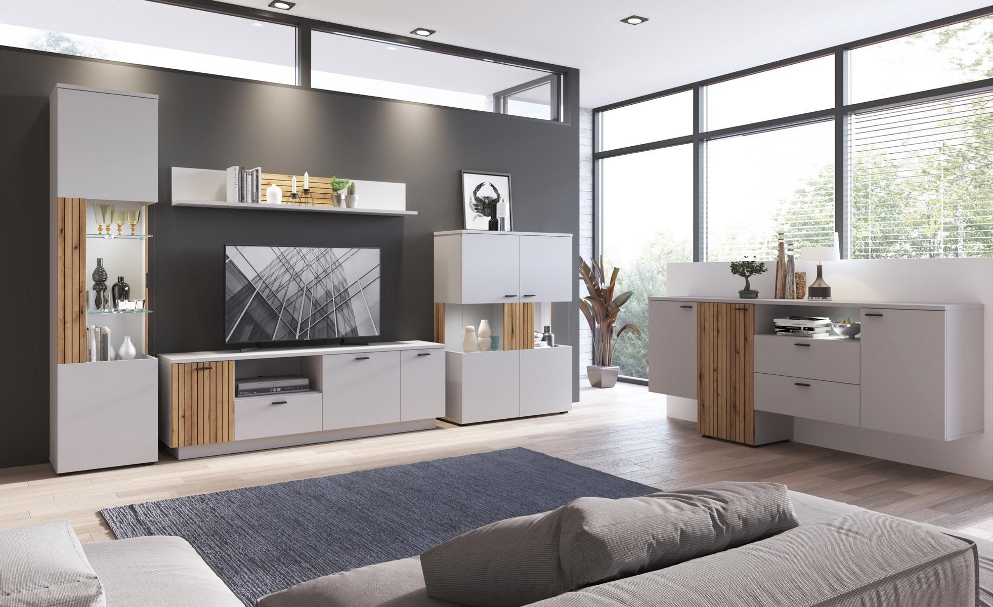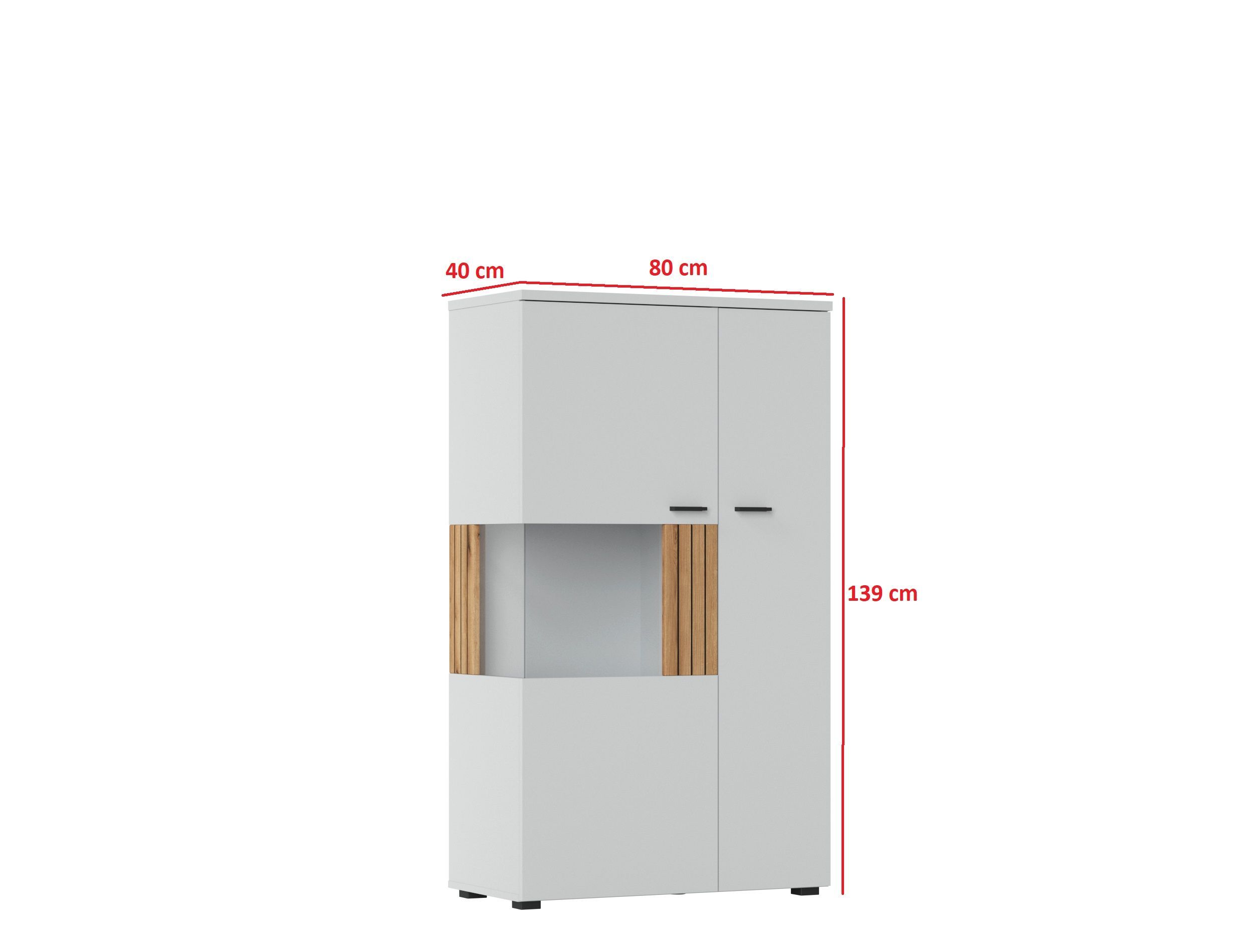 Design Vitrinenschrank Vero Aschgrau Eichenoptik 2-türig