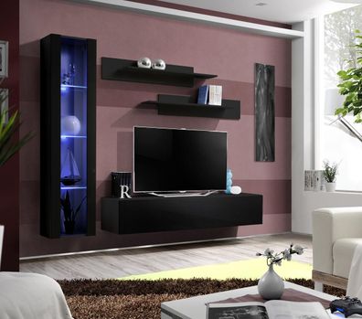 Wohnzimmermöbel Schwarz Komplett Set Wohnwand Designer Hänge Vitrine Möbel