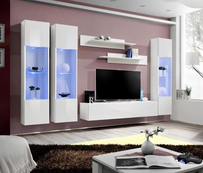 Moderne Wohnwand Wand Regale Wohnzimmer Hänge Vitrine Design Möbel