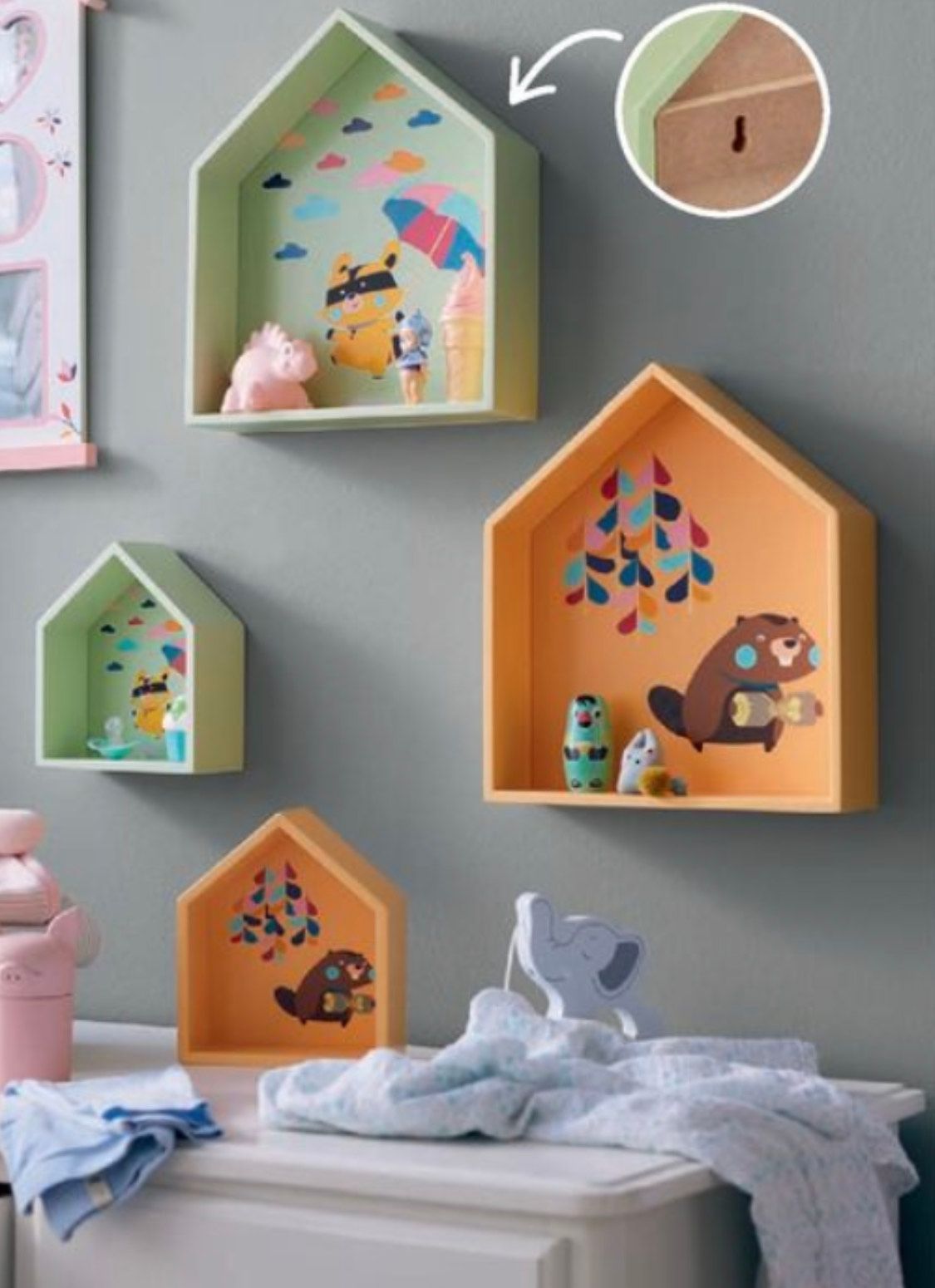 Design Wandregal Set 2 teil Kinderzimmer MDF lackiert Kinder Regal Hängeregal