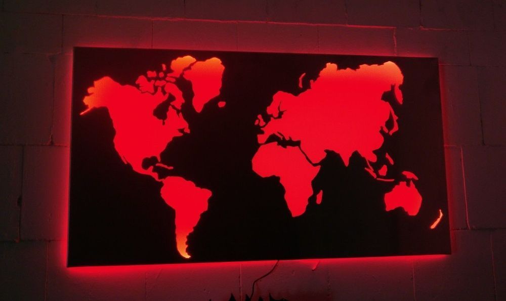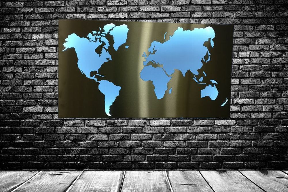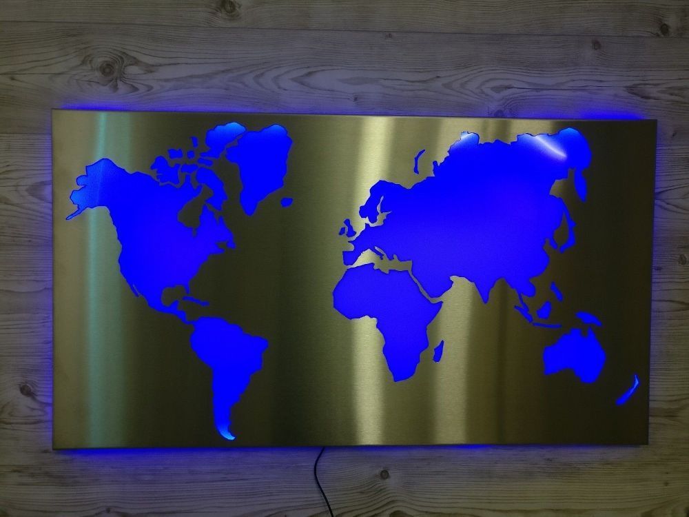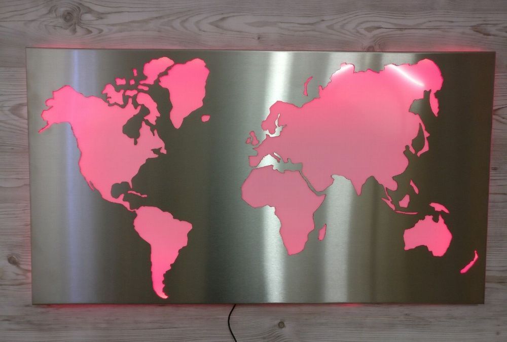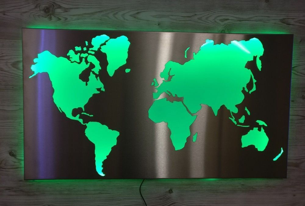 Design-Weltkarte Metall Edelstahl LED beleuchtet 100x60cm eyecatcher