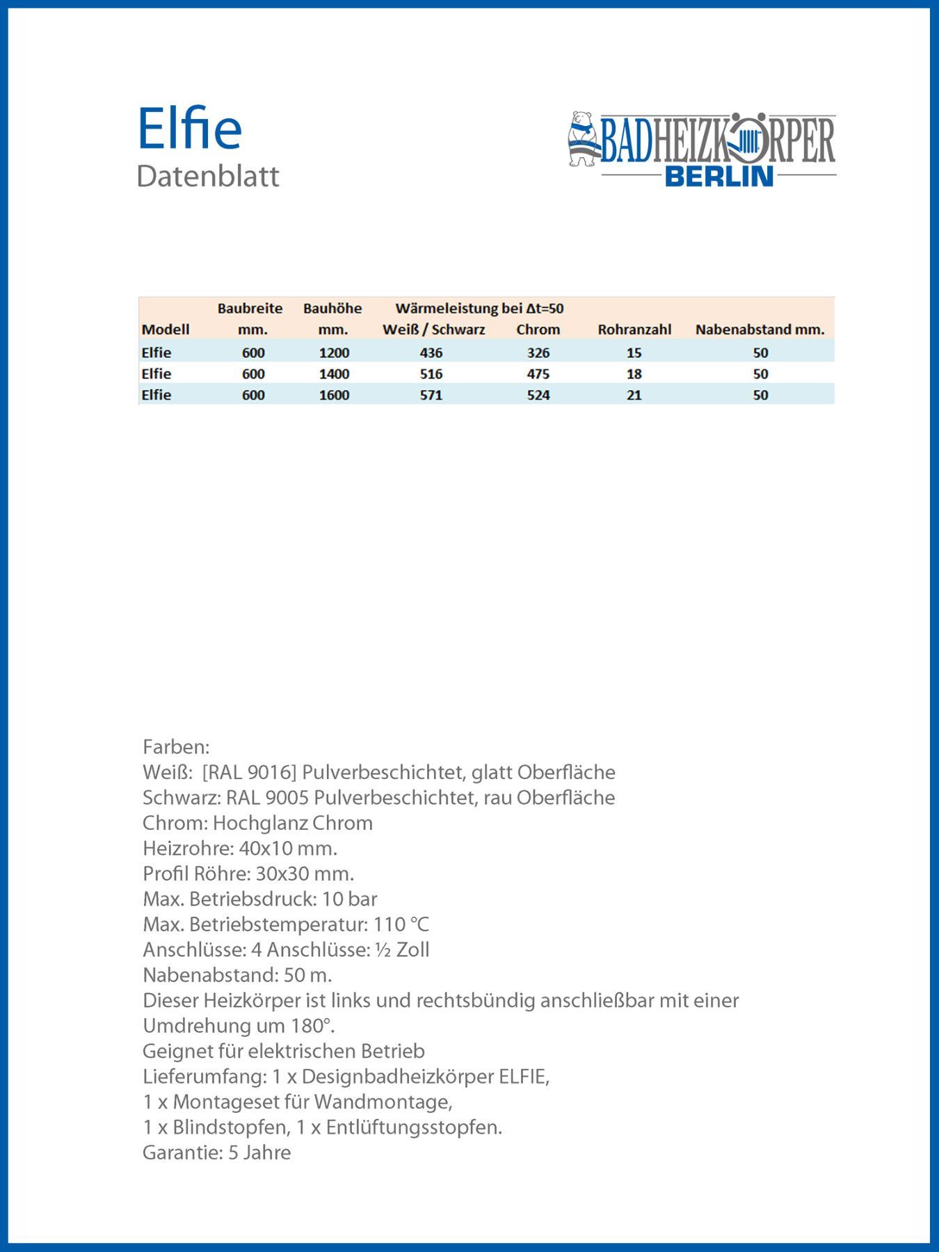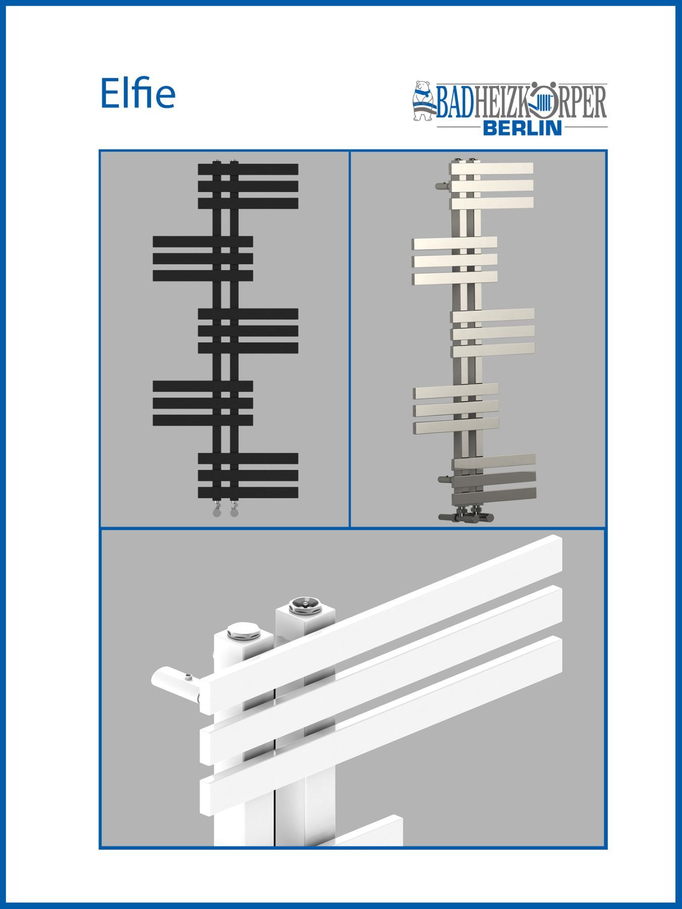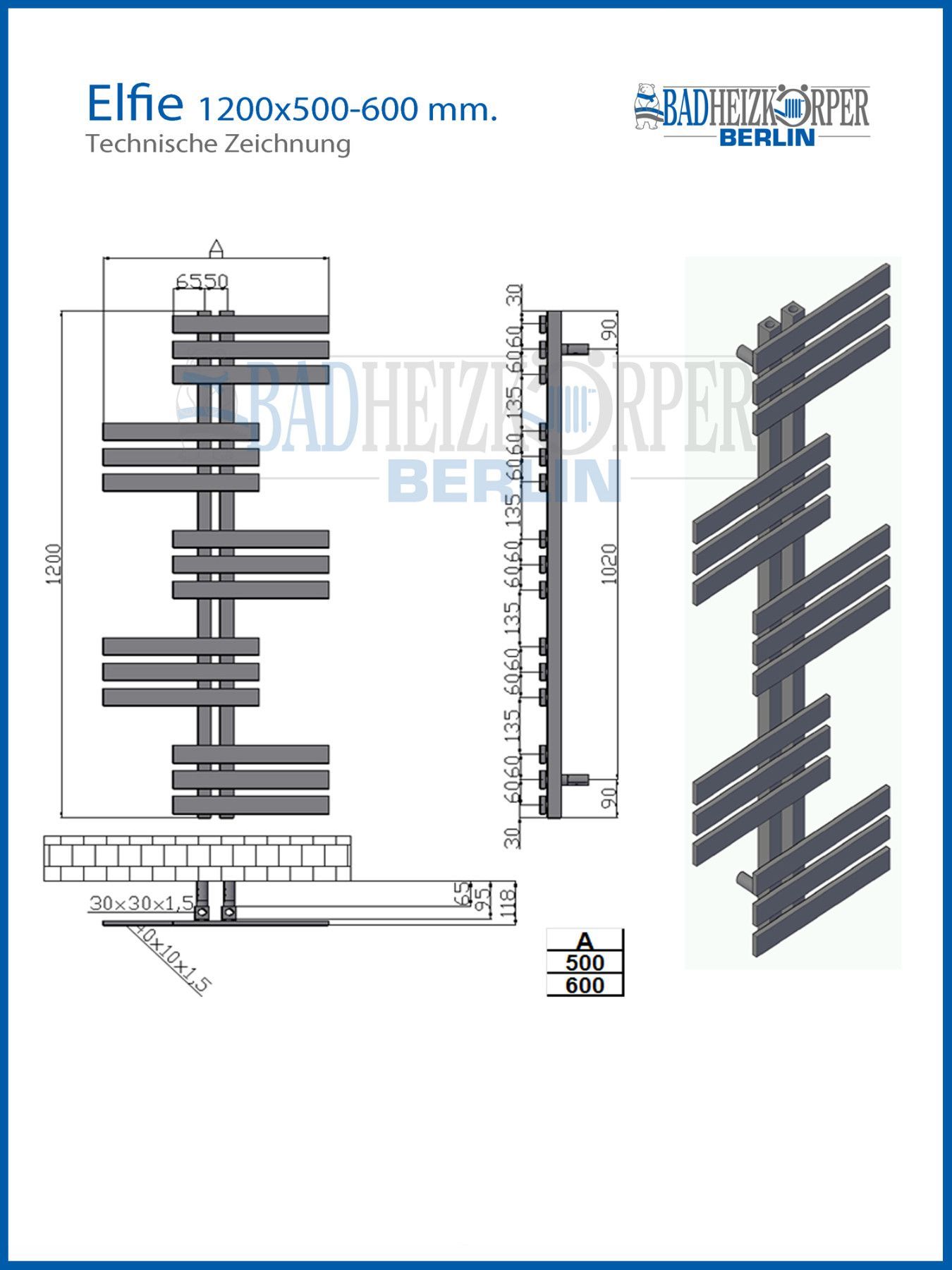 Designbadheizkörper ELFIE Schwarz Anthrazit 1200 x 600 mm. Handtuchwärmer