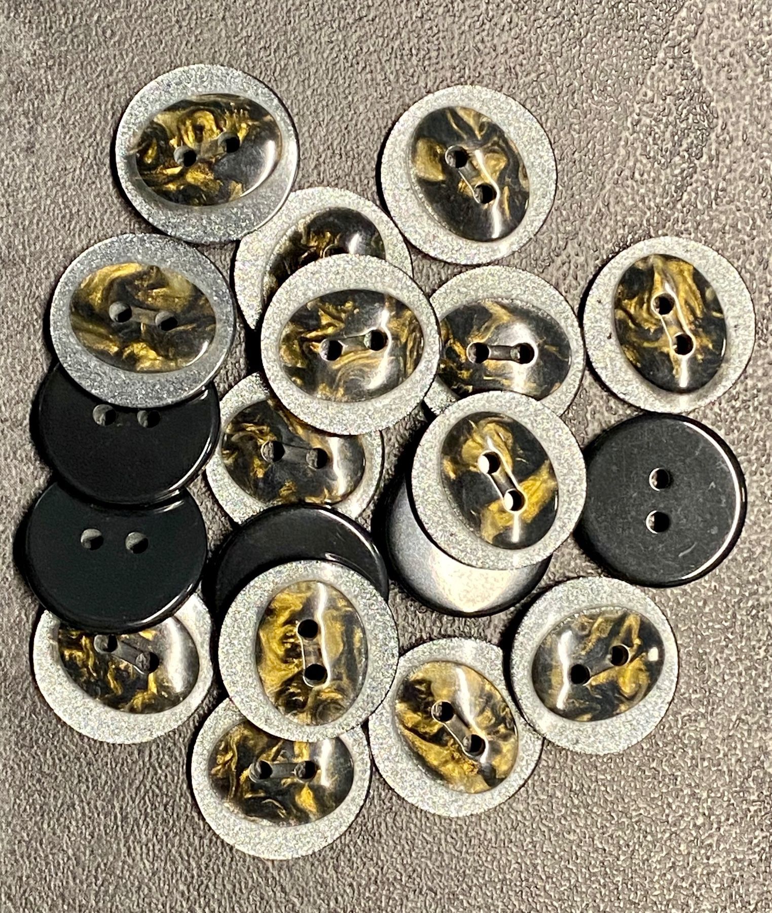 Eleganter, Designerknopf in silber gold Duchmesser ca. 18 mm Befestigung 2-Loch Wir verkaufen diesen Knopf in Packungen zu ca. 20 g (ca.19 Stück)