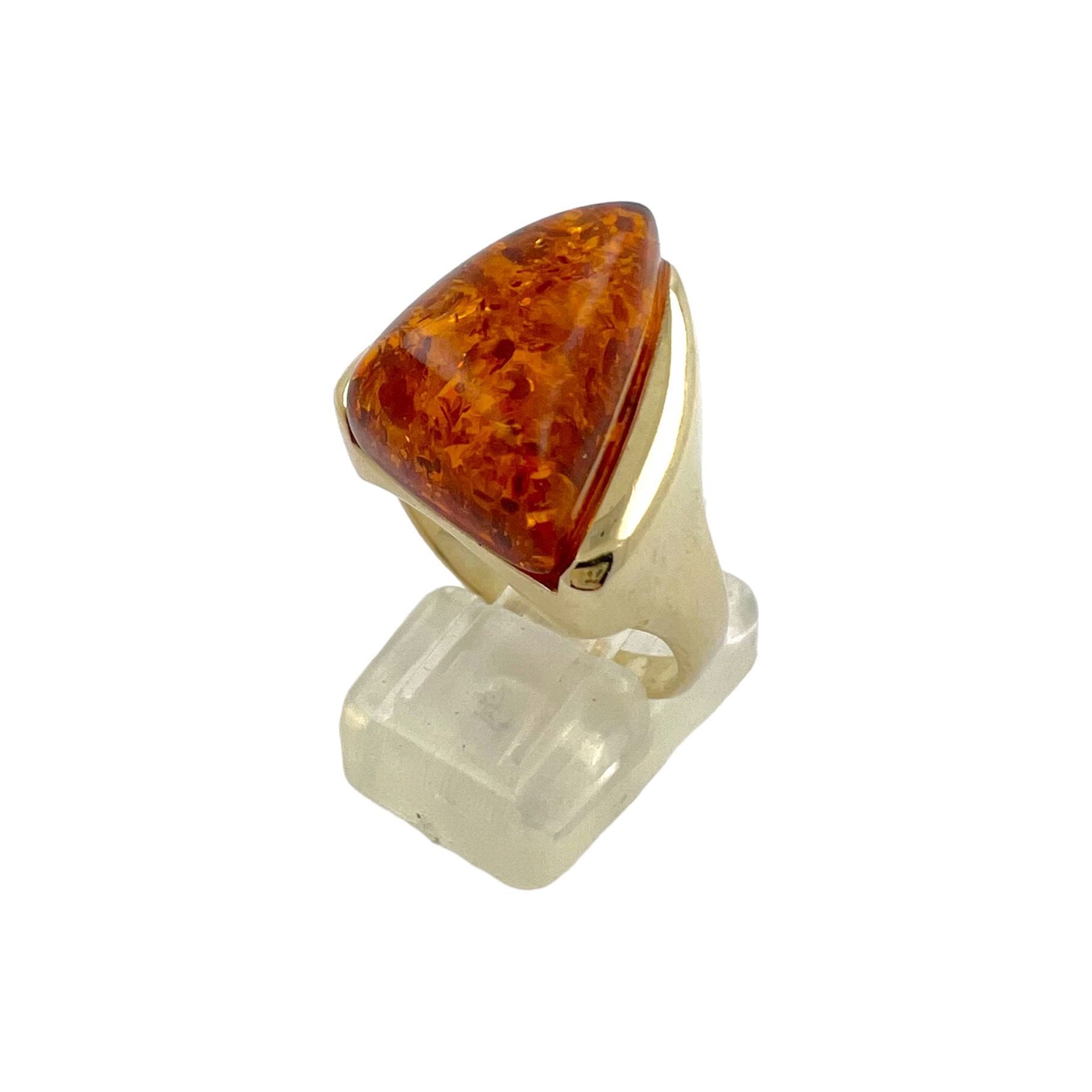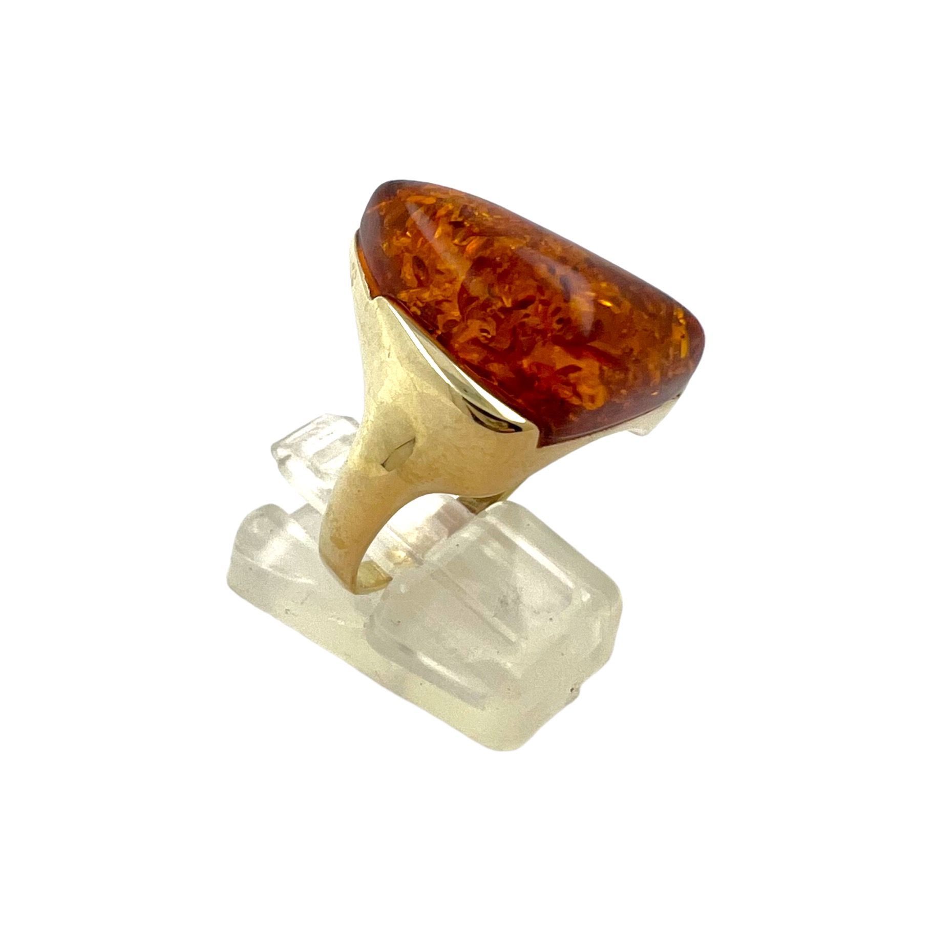 Designer Bernstein Ring aus 8 kt Gold - Gr 59 EU Handarbeit