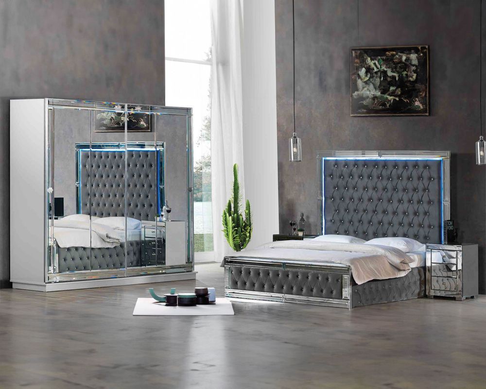 Designer Chesterfield Doppelbett 2x Nachttische Schlafzimmer 3tlg Set