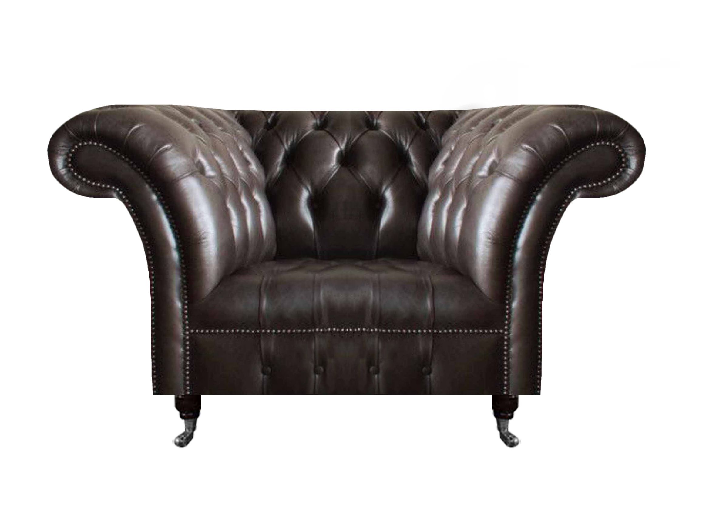 Designer Chesterfield Sessel Brauner Ledersessel Wohnzimmer Lehnsessel