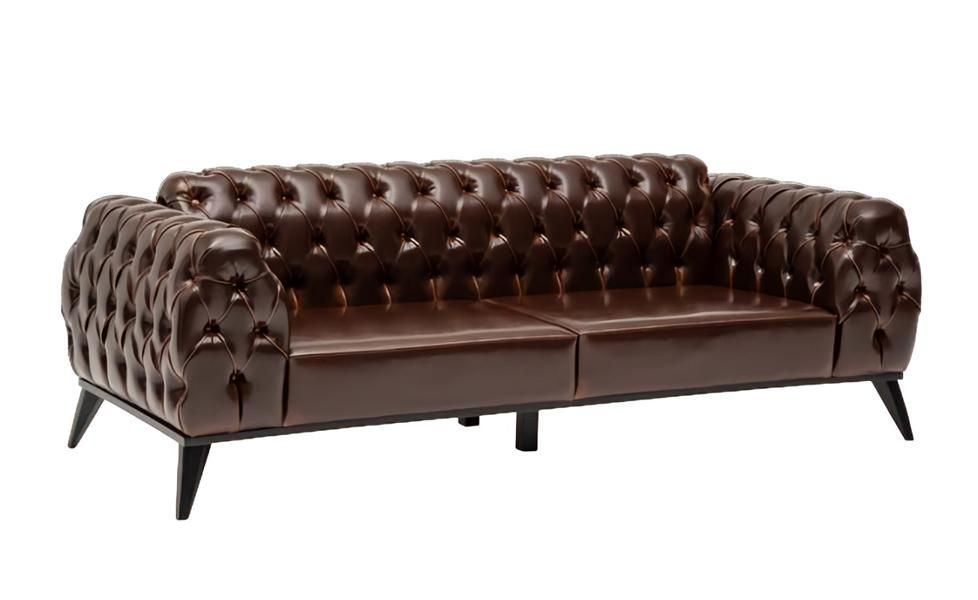 Designer Chesterfield Sofagarnitur Braun Dreisitzer Bequem Sitzgruppe 3 + 1 + 1
