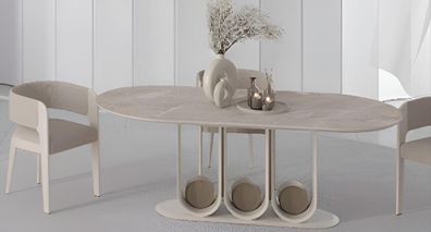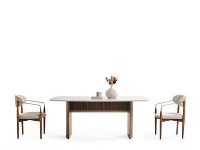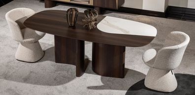 Exklusives Esszimmer-Set Abgerundeter Esstisch Designer Küchenstühle
