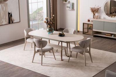 Elegantes Esszimmer Set aus Holz in Beige mit modernem Design