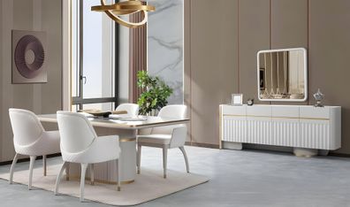 Esszimmer Set 6x Stühle+Esstisch+Sideboard+Spiegel Set Esszimmer Designer Neu
