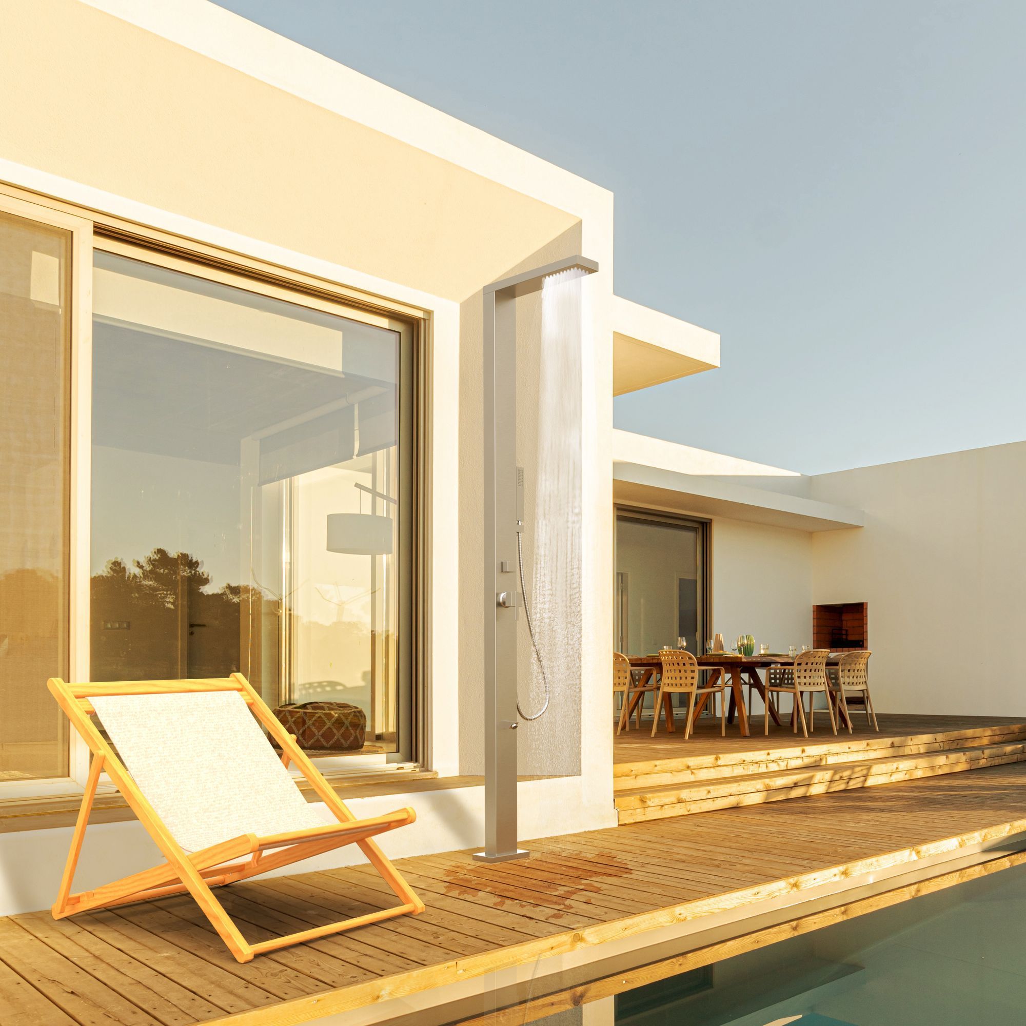 Designer Gartendusche aus V4A / 316 Edelstahl Modell "NANI"