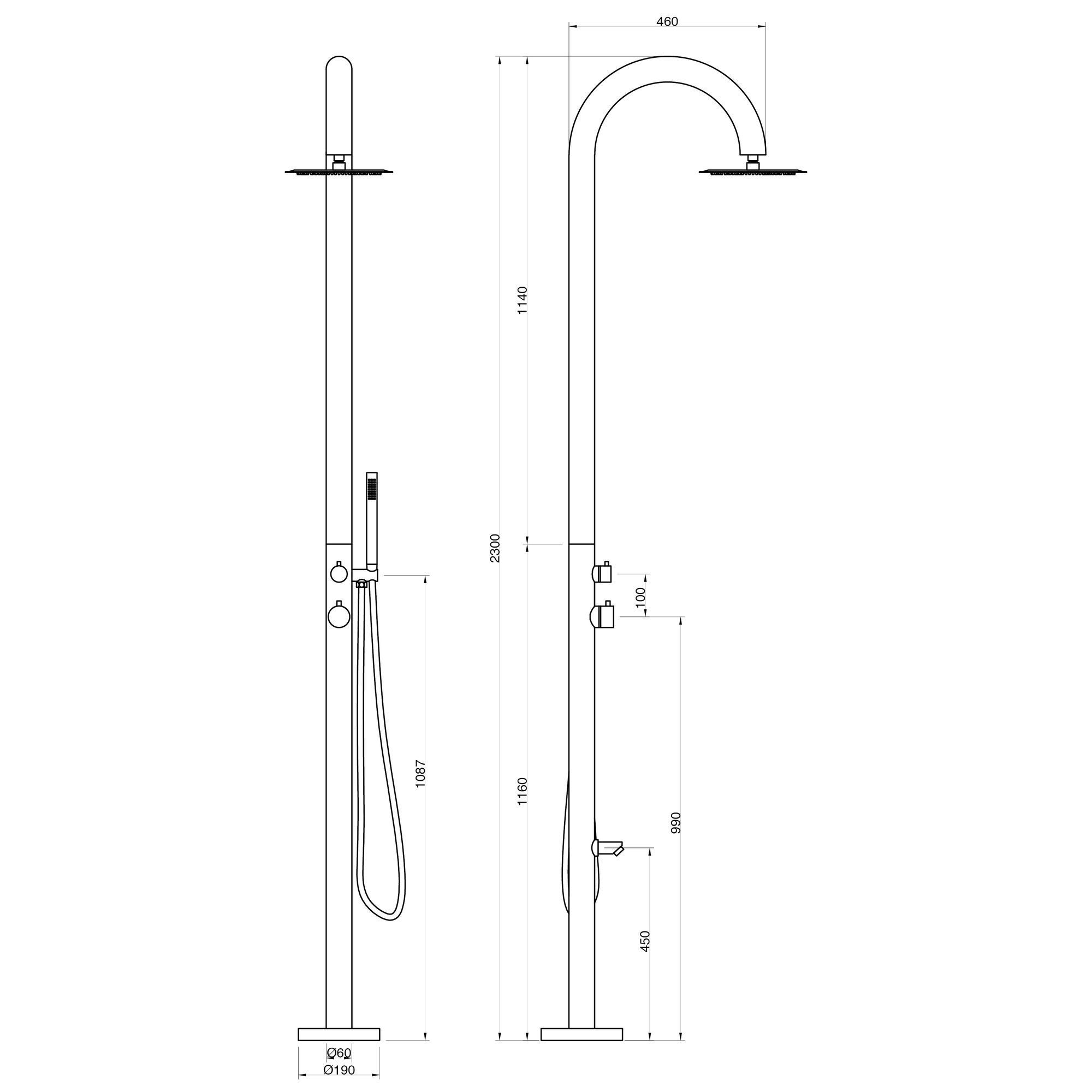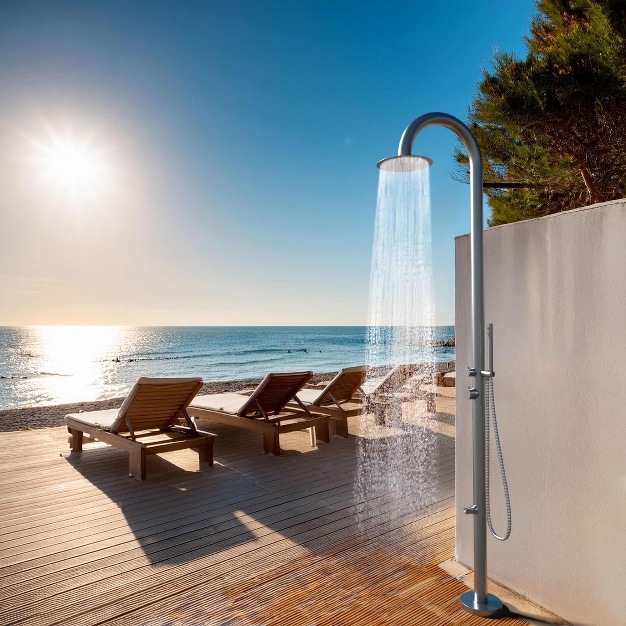 Designer Gartendusche aus V4A / 316 Edelstahl Modell "NOE"