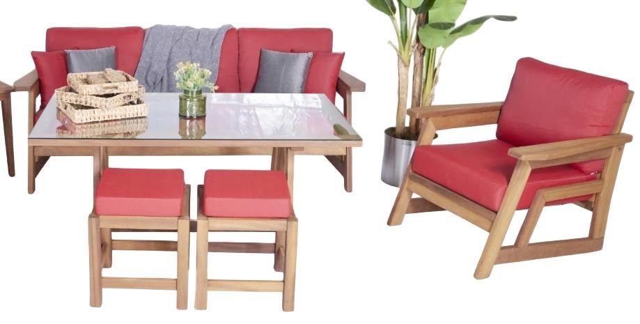 Designer Gartenmöbel Set 5Tlg Sofagarnitur Esstisch Holz Möbel 2X Hocker