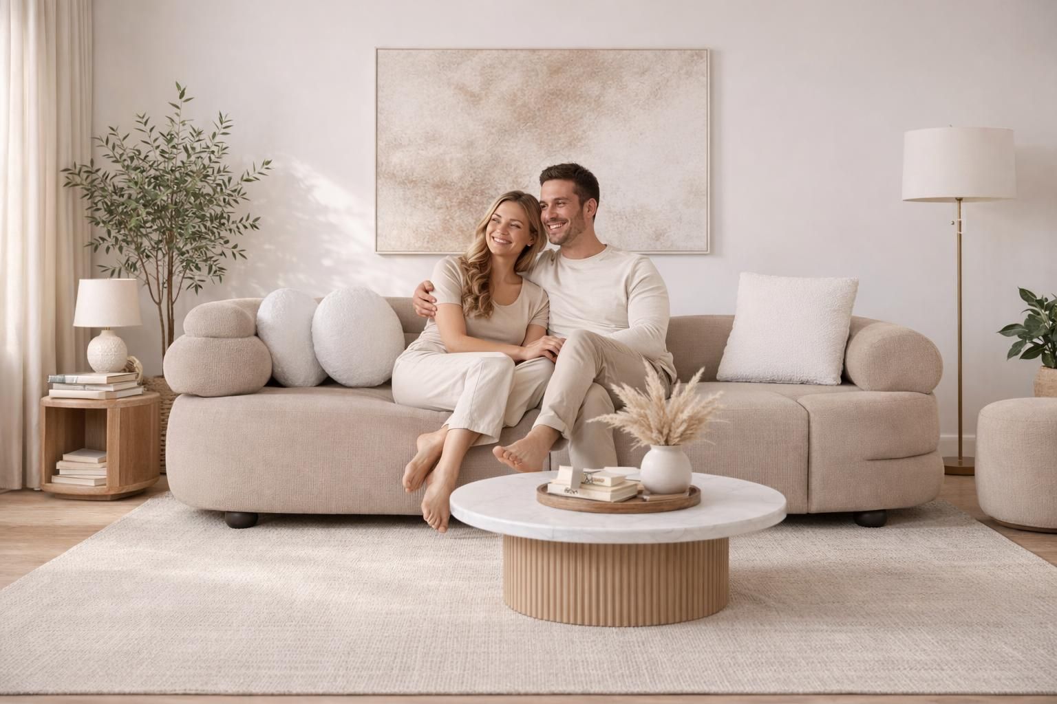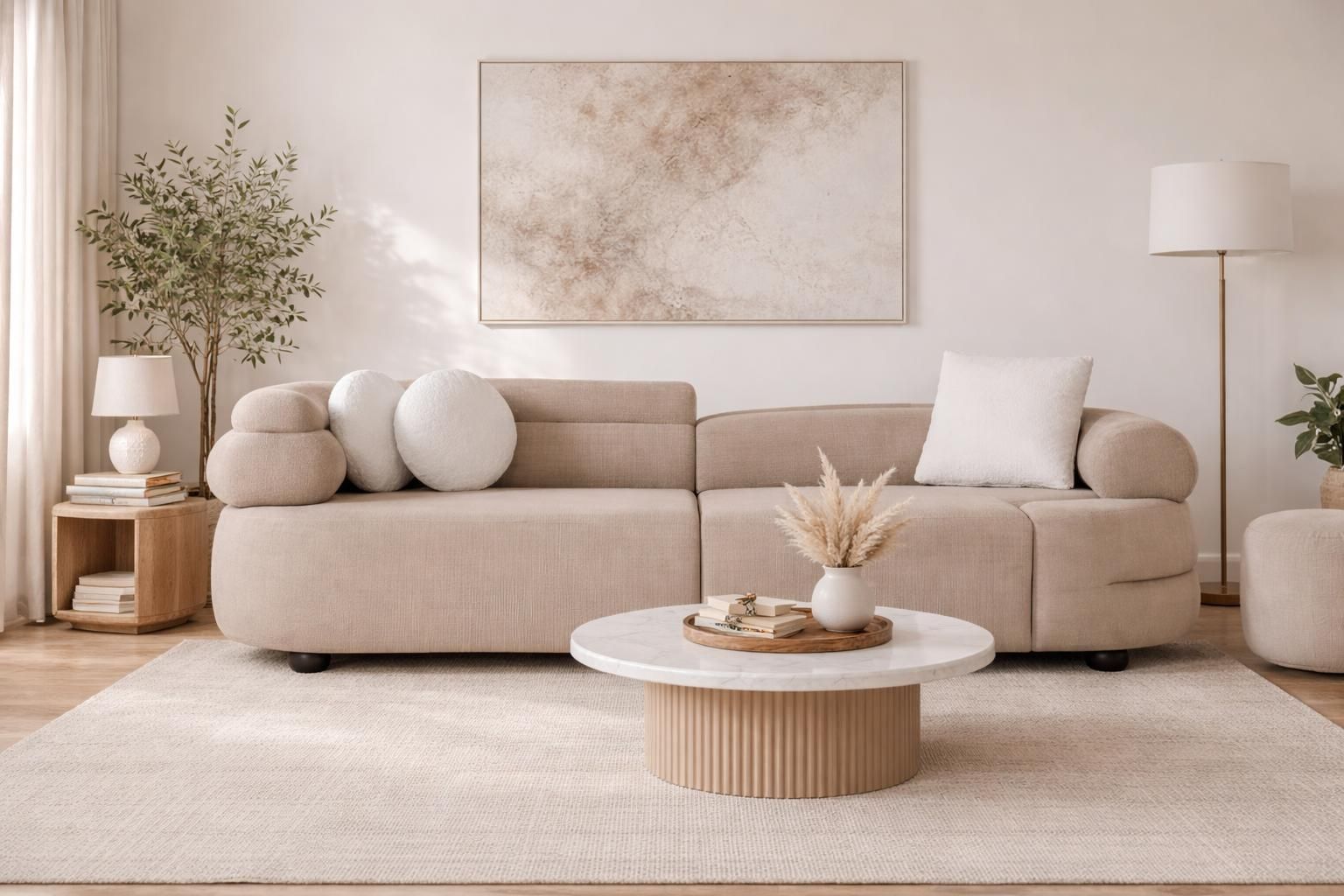 Designer Hellbraunes Polstersofa Wohnzimmer 3-Sitzer Moderne Couch