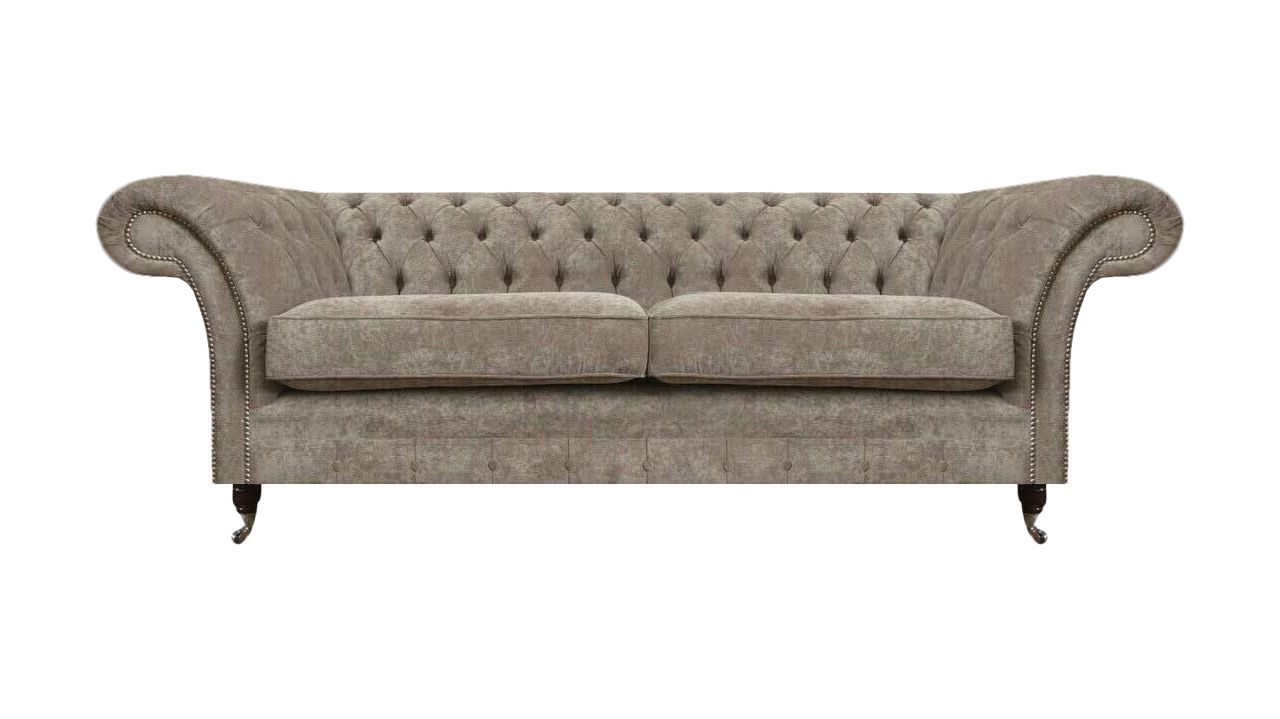 Designer Hellgrauer Chesterfield Zweisitzer Wohnzimmer Luxus Couchen