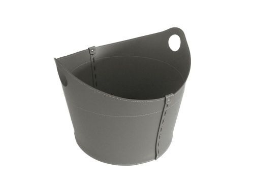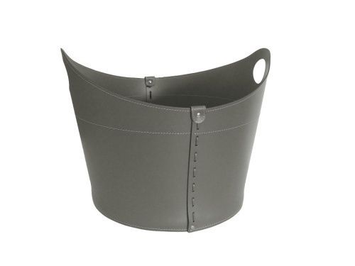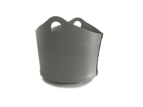 Designer Holzkorb Cadin Taupe aus regeneriertem Leder mit Rollen