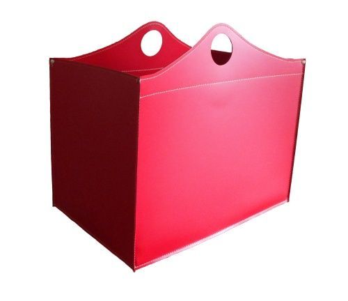 Designer Holzkorb Woodbag Rot aus regeneriertem Leder mit Rollen