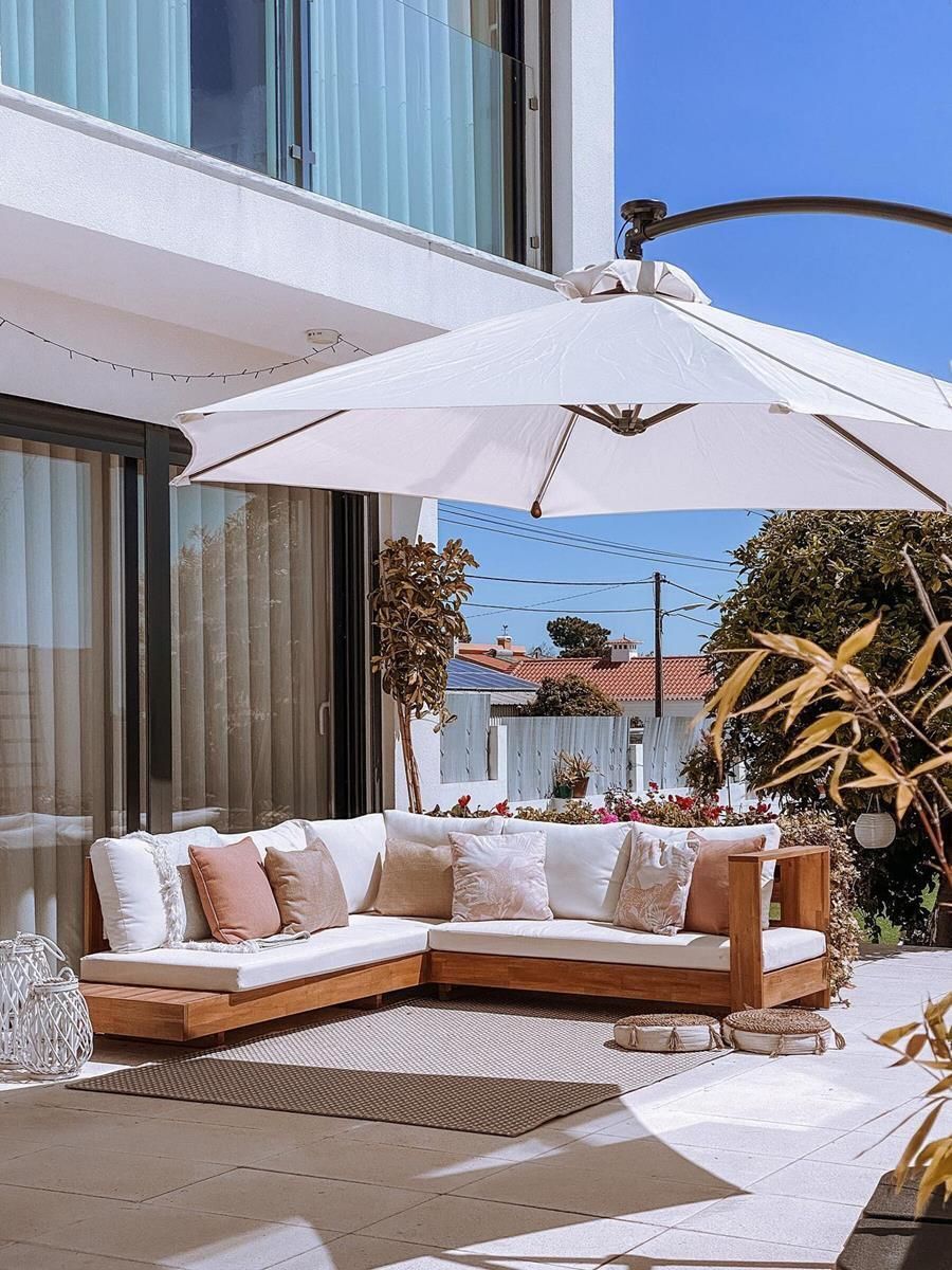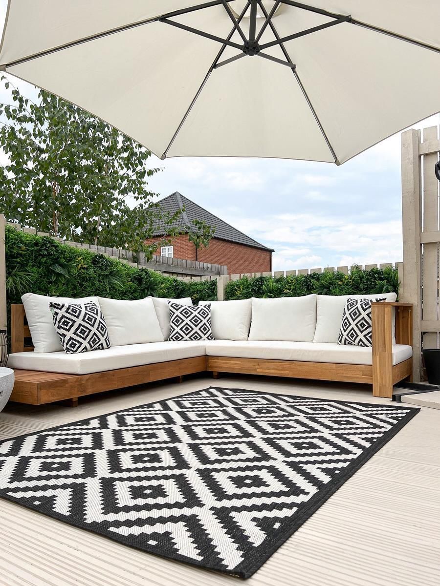Designer Massivholz Lounge Mallorca L Akazie Gartenmöbel braun weiss Terrasse Balkon