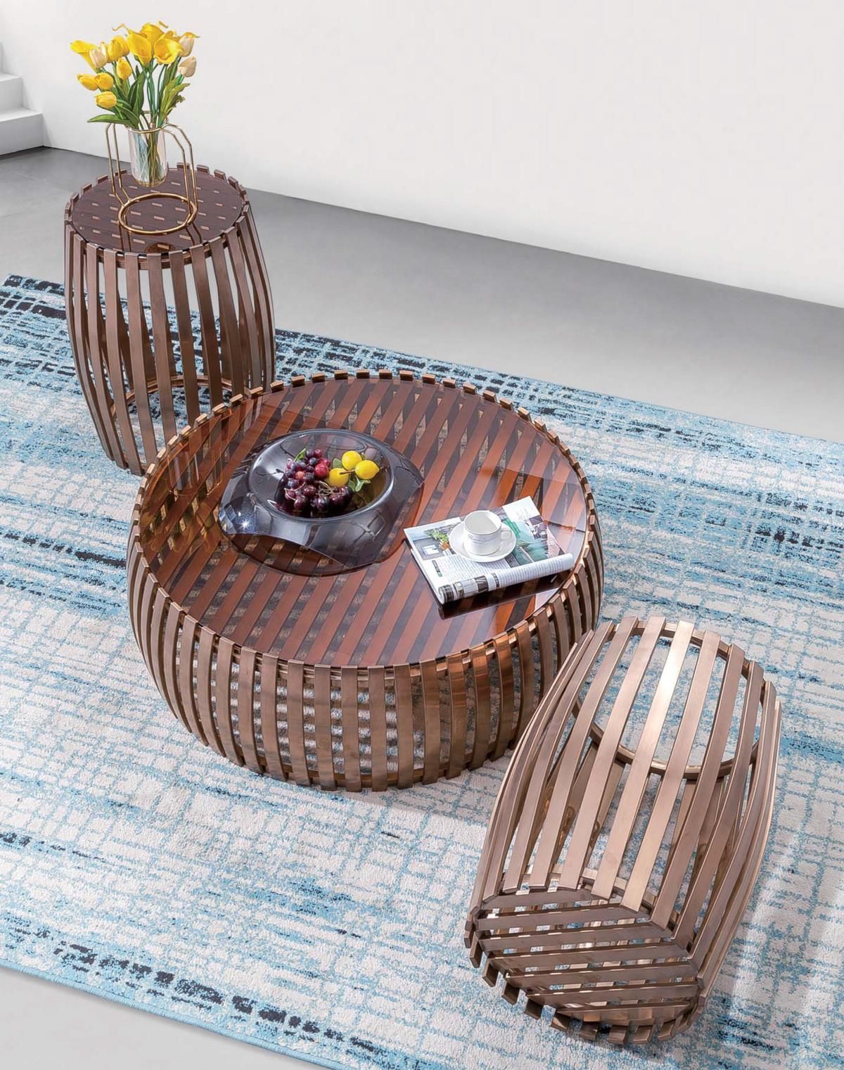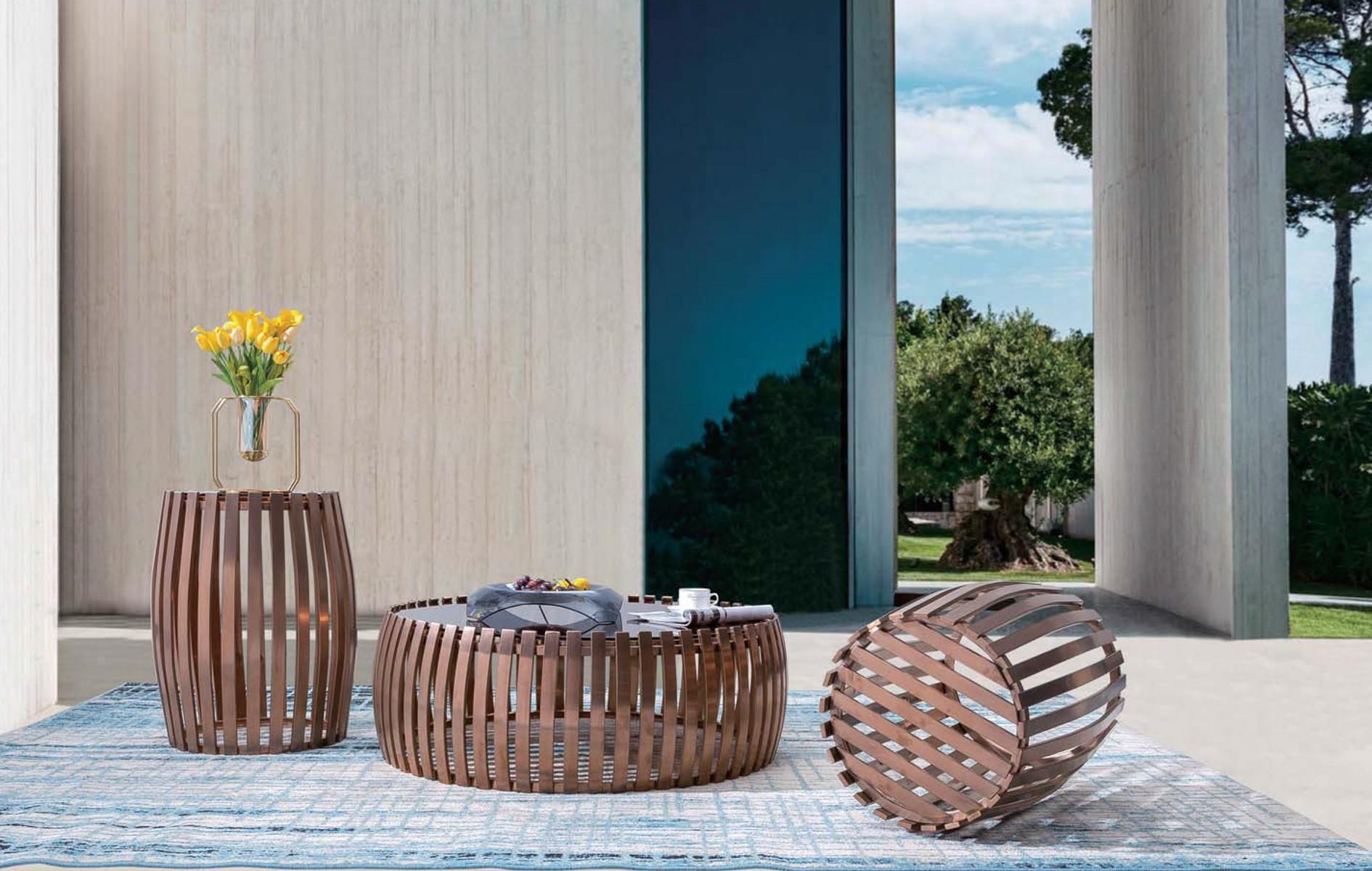 Designer Metall Edelstahl Couch Glas Tisch + Beistell Tische 2 tlg. Set Sofa Neu