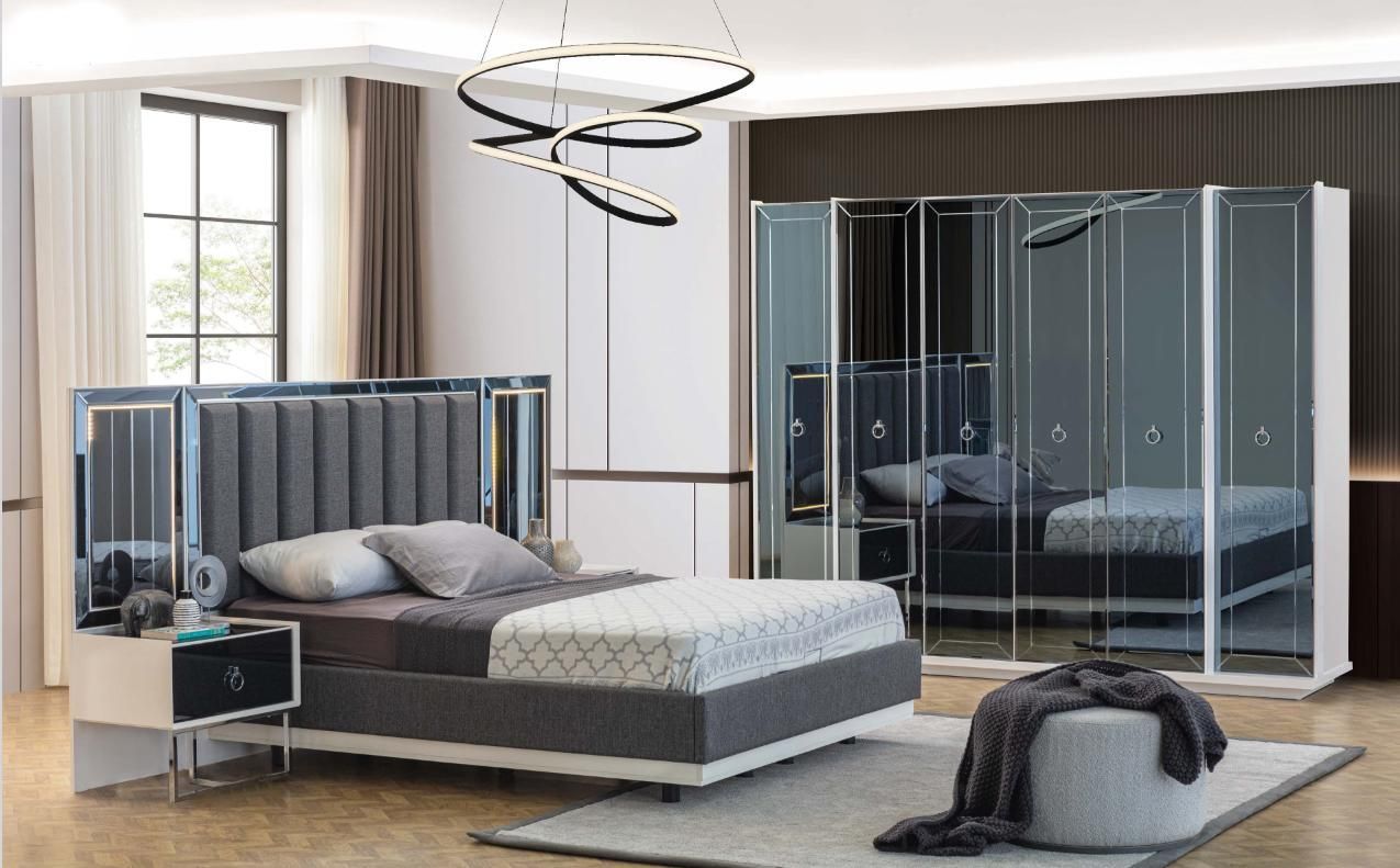 Designer Schlafzimmergarnitur Doppelbetten Nachttisch Kleiderschrank