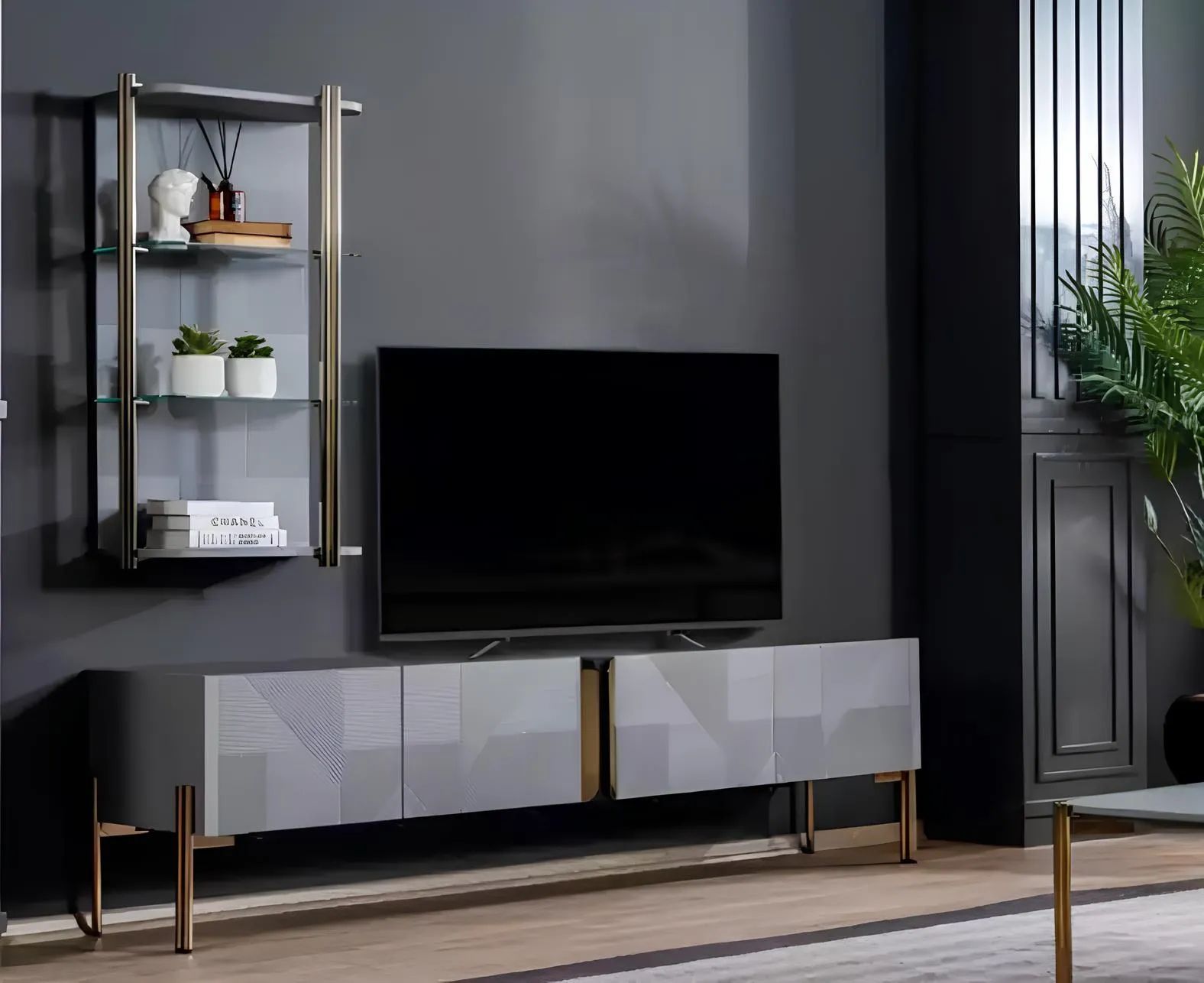 Designer Set 2 tlg. Wohnwand Lowboard Wandschrank Luxus Möbel Wohnwände