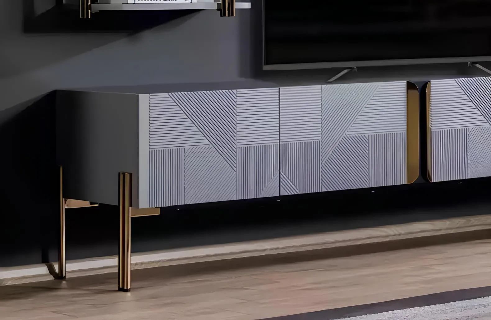 Designer Set 2 tlg. Wohnwand Lowboard Wandschrank Luxus Möbel Wohnwände