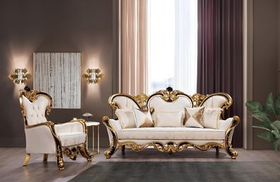 Königliches Sofa Set 3 + 1 Sitzer Sofa Sessel Klassischer Design Luxus Wohnzimmer