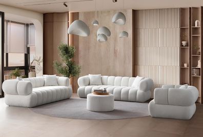 Wohnzimmerset Sofa Couchtisch und Hocker in modernem Design
