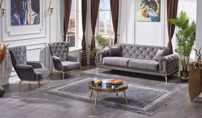 Grau Zweisitzer Sofa Set 3tlg Dreisitzer Sofa Designer Sessel Chesterfield