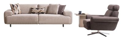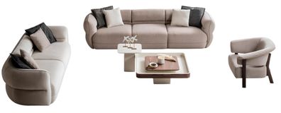 Elegantes Wohnzimmer Set Beige 3 Sitzer Sofa mit Sessel Design Sofa Couch Neu