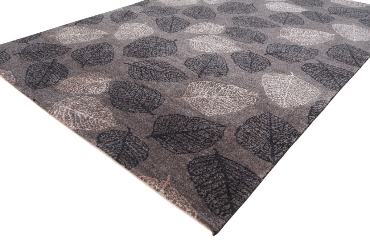 Designer Teppich 140x200 cm Wolle Bambus Seide Handgeknüpft Mammut grau braun