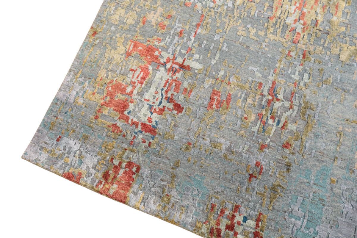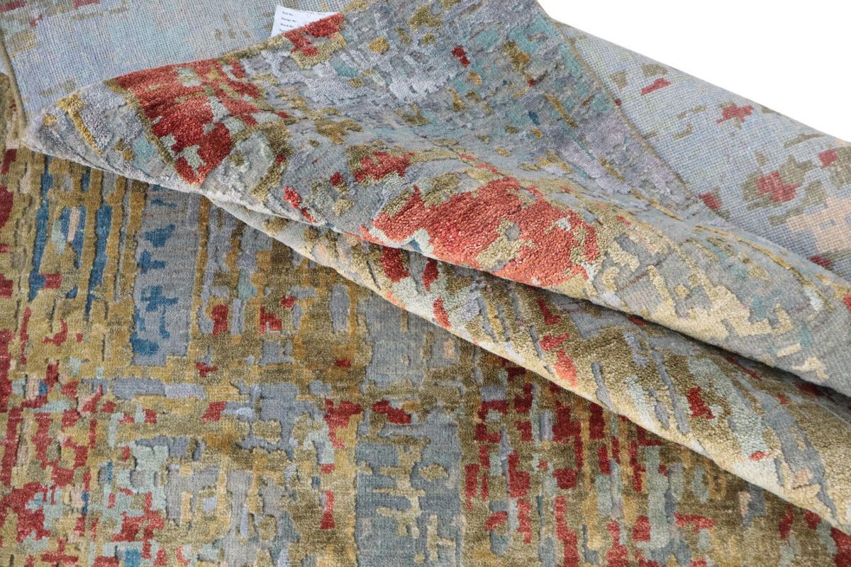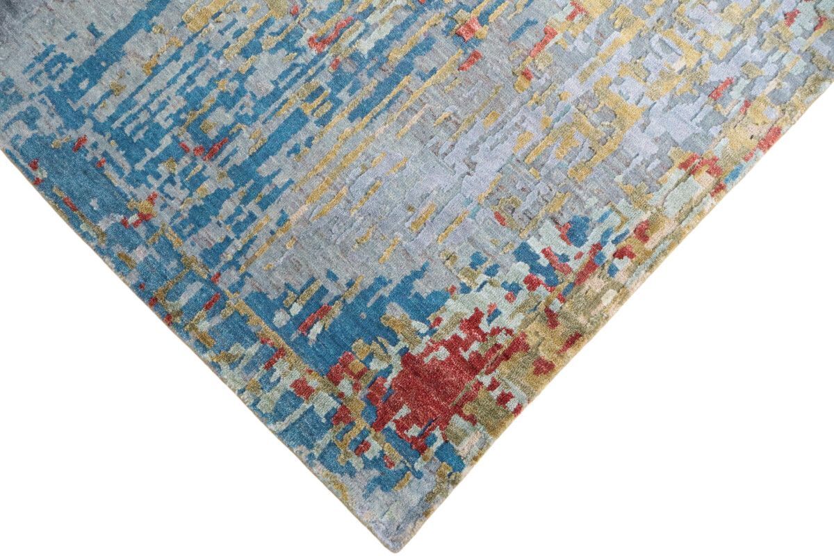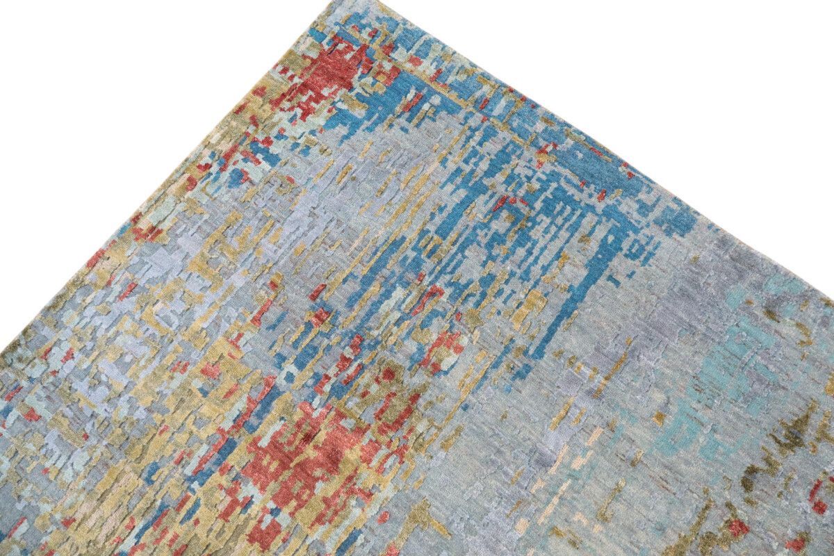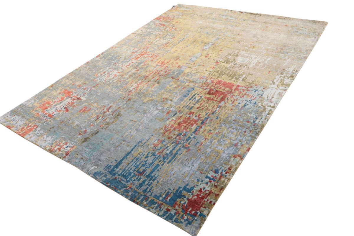 Designer Teppich Modern 200x290 cm Wolle Seide Handgeknüpft rot blau gold
