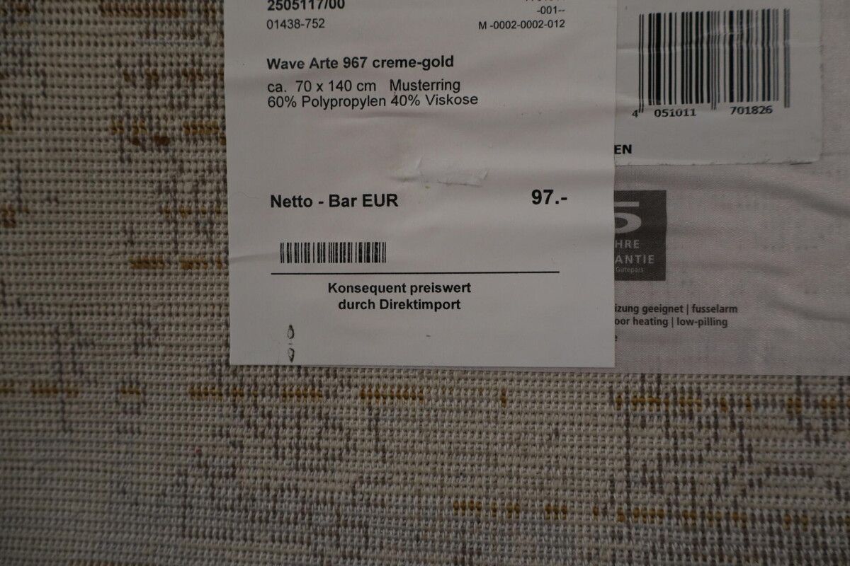 Designer Teppich Musterring Wave Arte 967 Gewebt 70x140 cm creme gold
