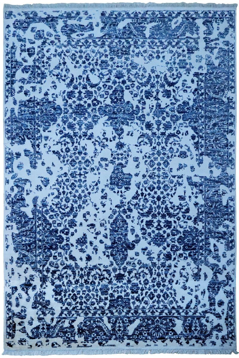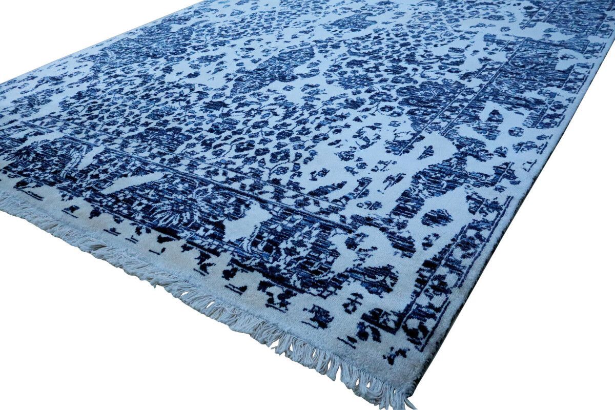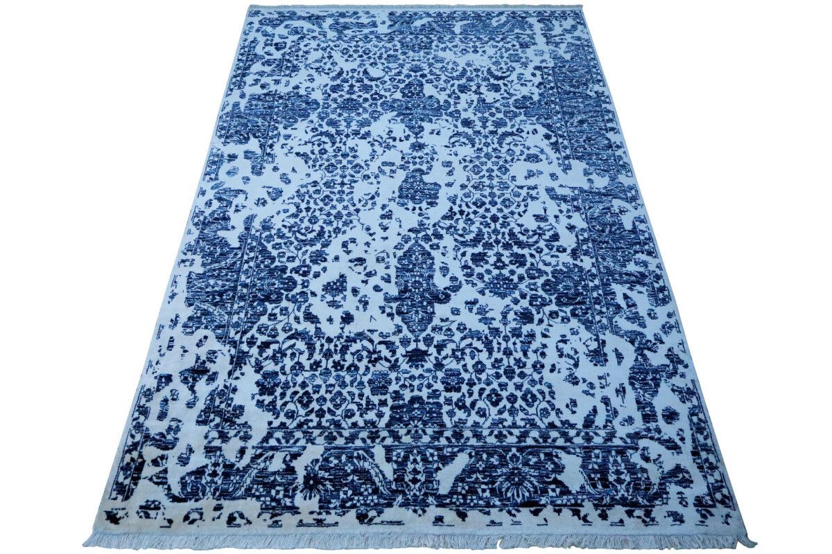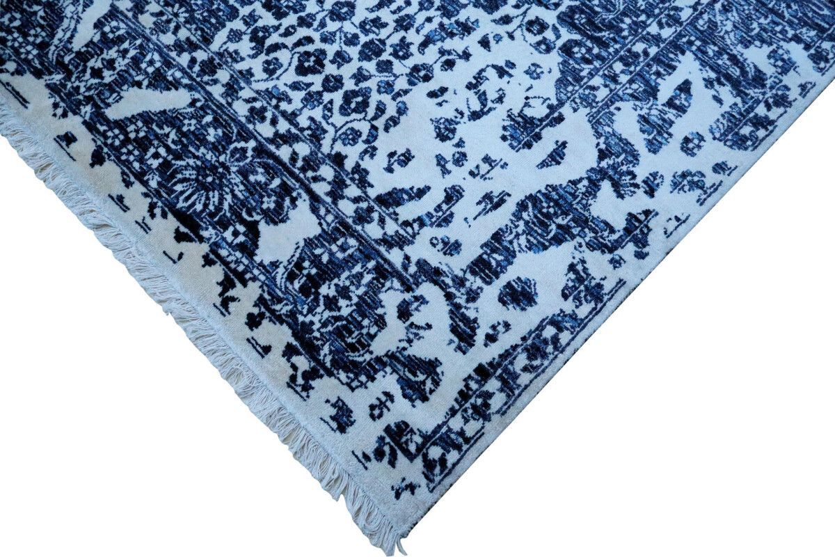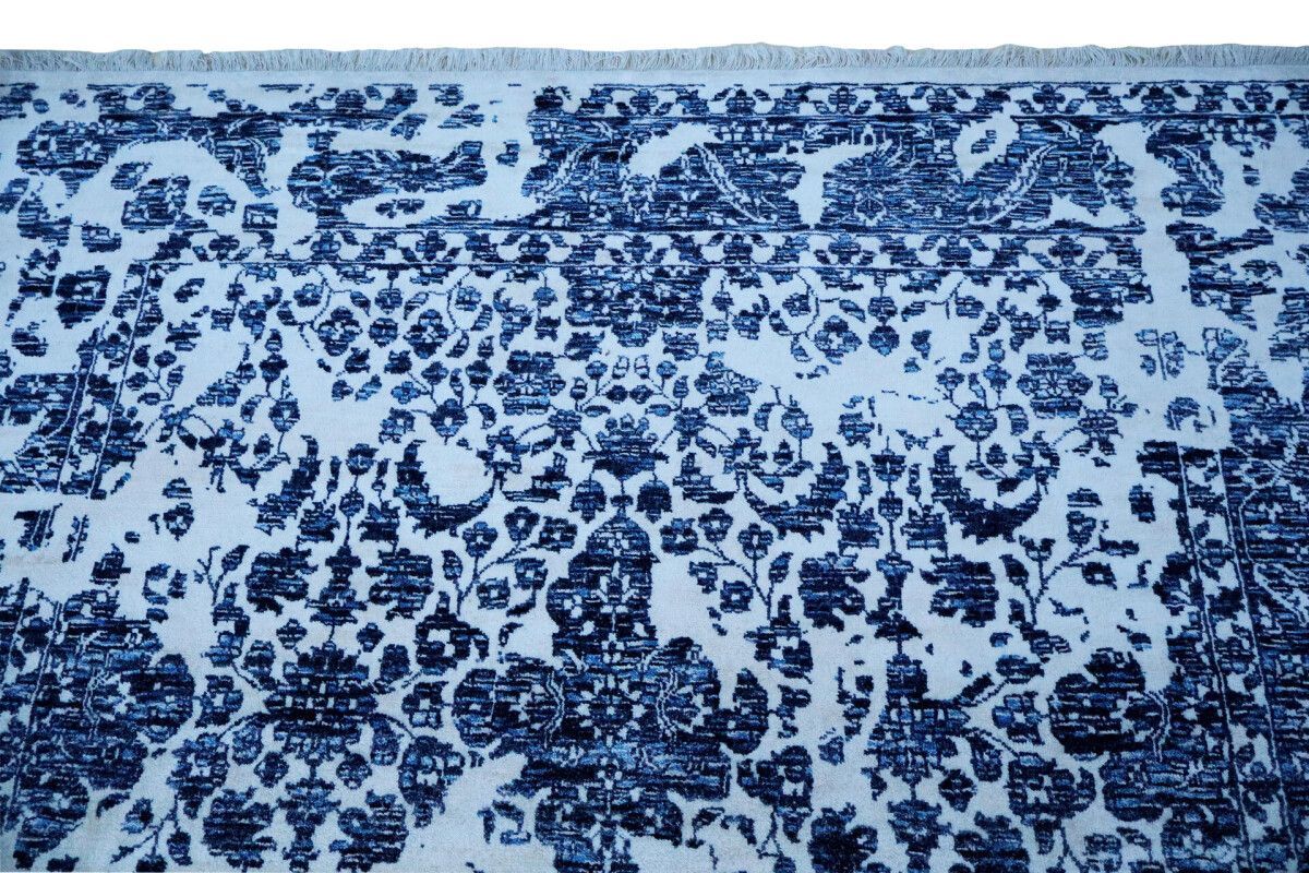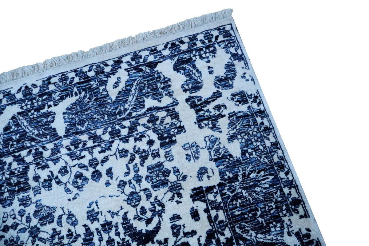 Designer Teppich Prestige Floral 200x300 cm 100% Wolle Handgeknüpft weiß blau