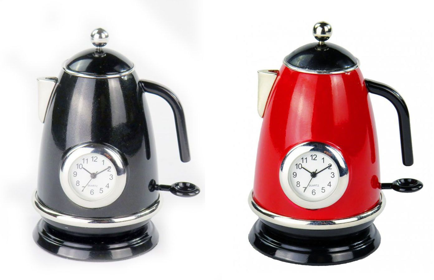 Designer Tischuhr Teekanne aus Metall - Farbe: Schwarz