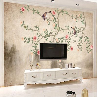 • Designer Wandtattoo Handgemalt Blumen & Baum 3D Fototapete modern 10315