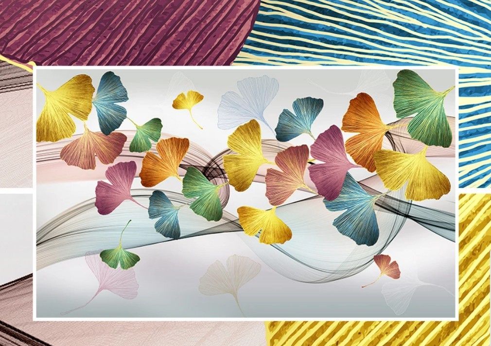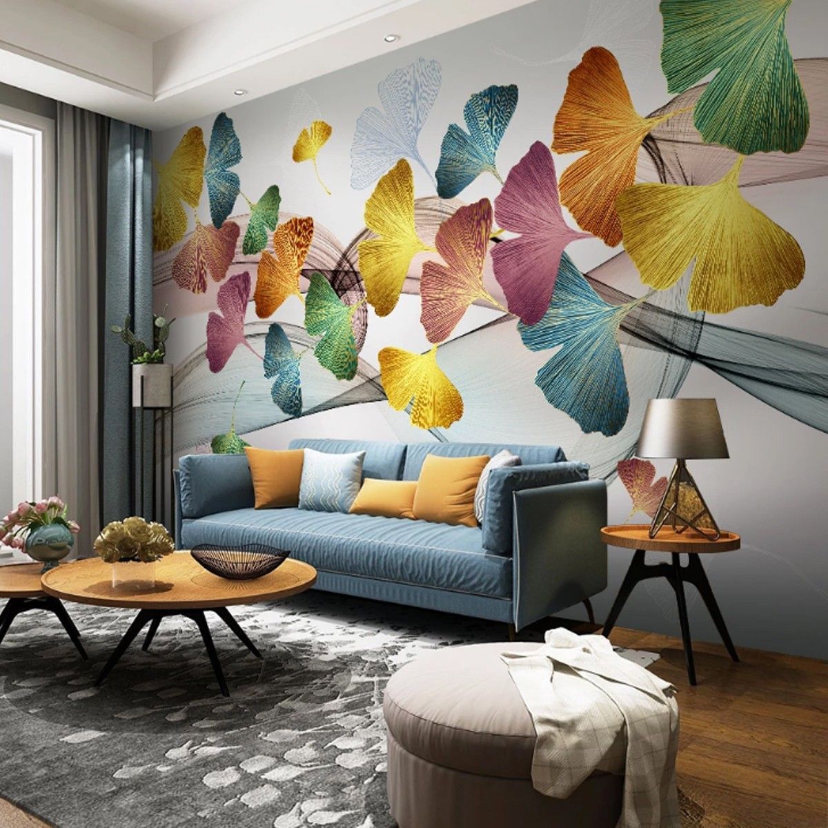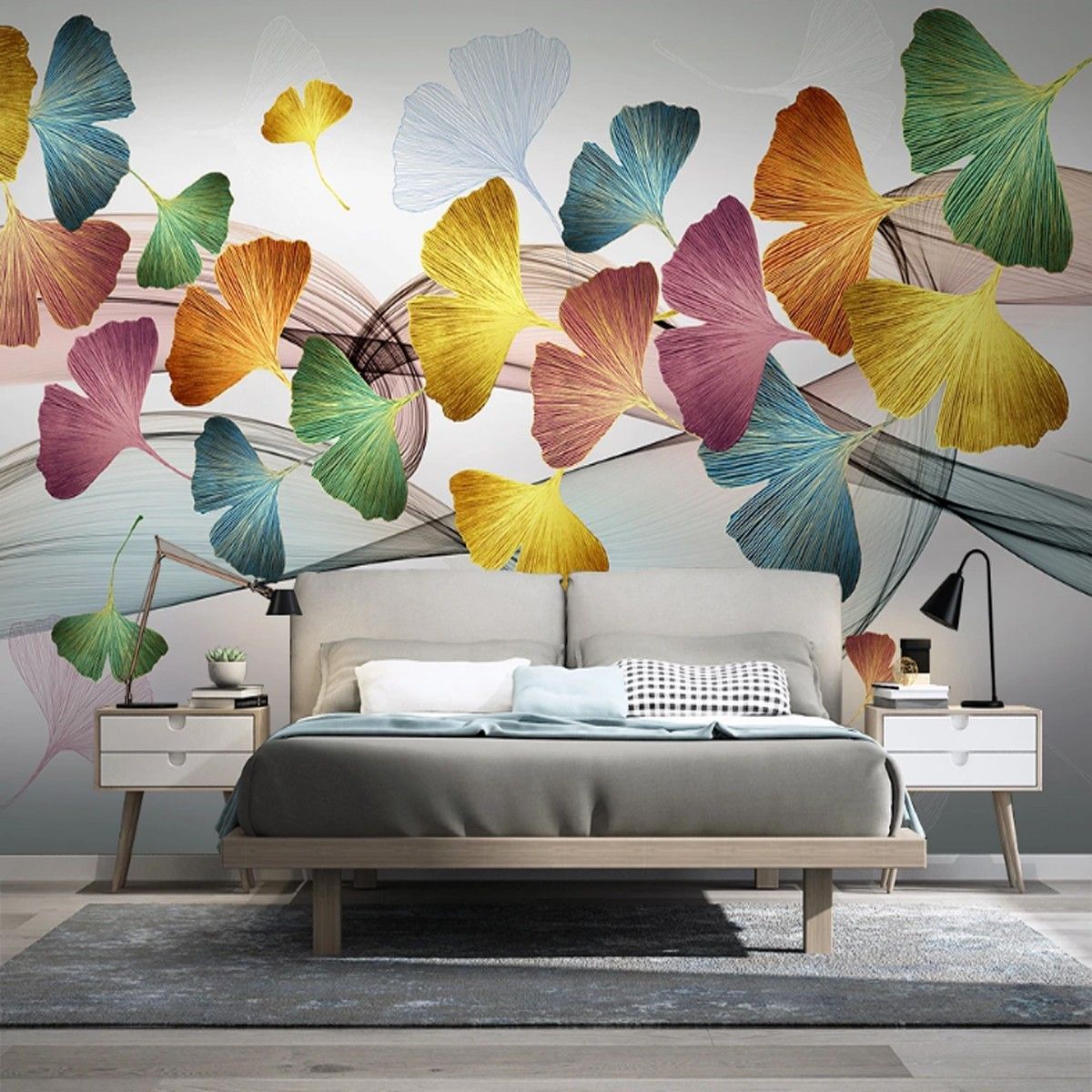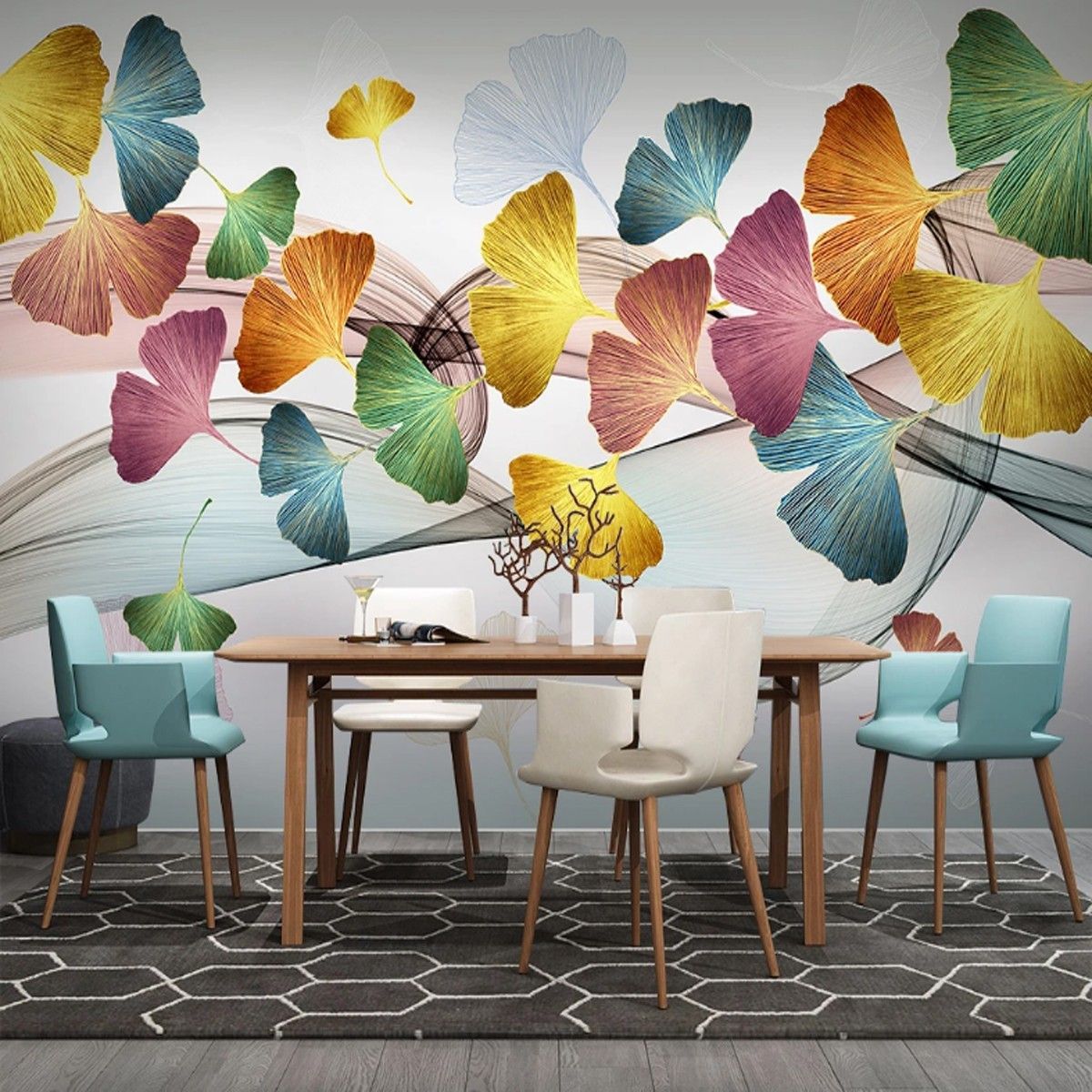 Designer Wandtattoo Handgezeichnete Ginkgo Blätter 3D Fototapete Modern 10320