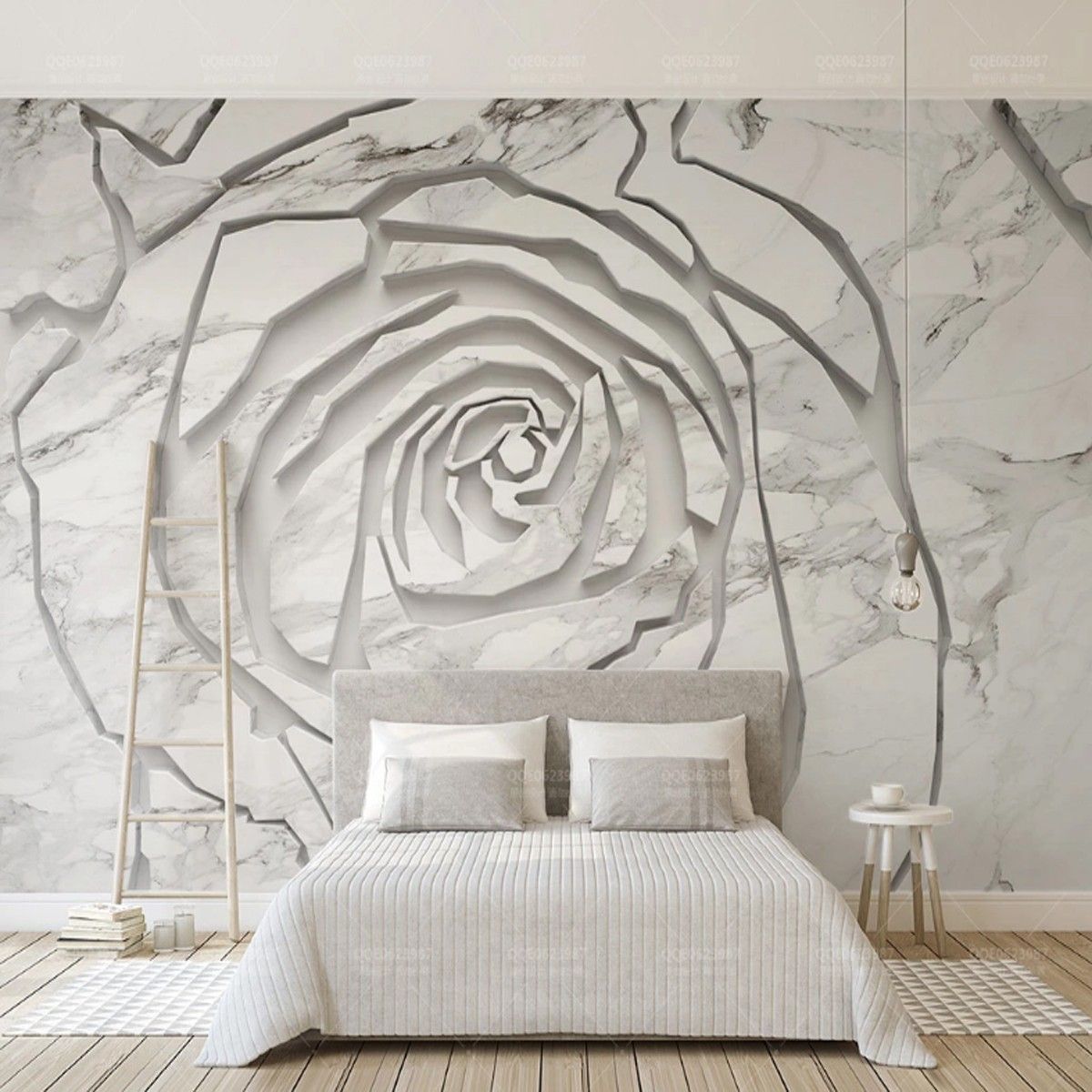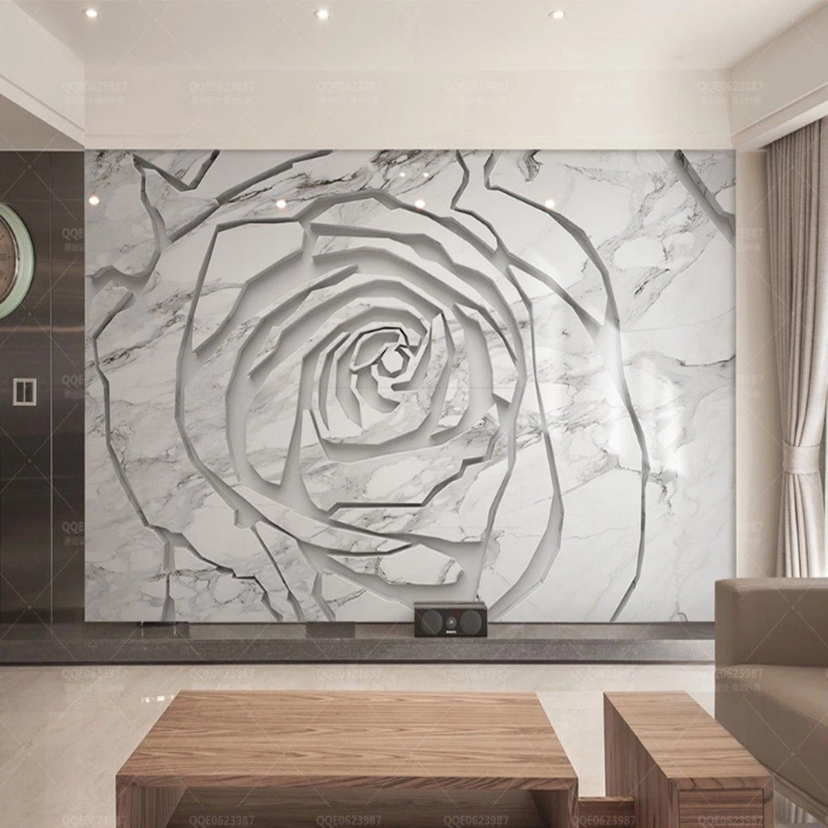 Designer Wandtattoo Weißer Marmor 3D Rosen Fototapete Elegant & Abziehbar 10323
