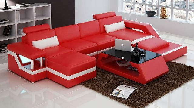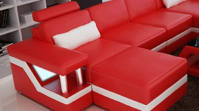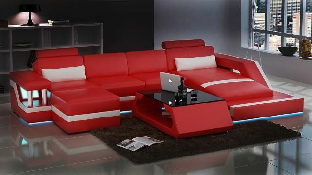 Designer Wohnlandschaft Big Modernes Ledersofa mit USB Hamburg III Ecksofa Sofa