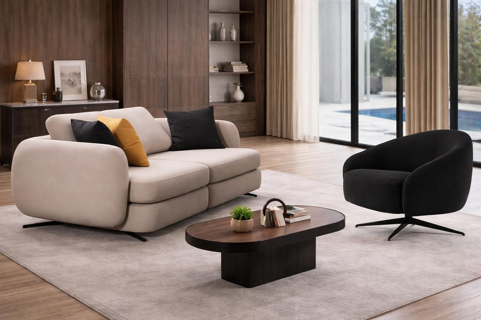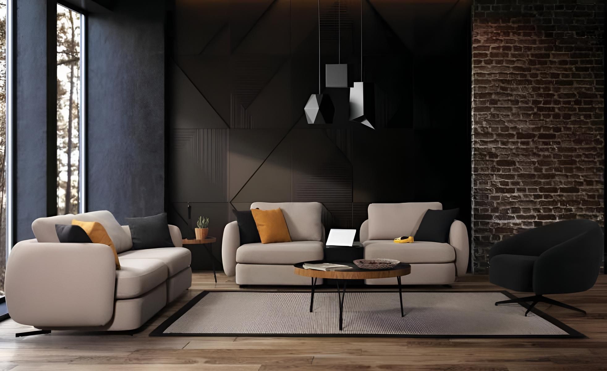 Designer Wohnzimmer Garnitur Textil 4-Sitzer Designer Stoffsessel