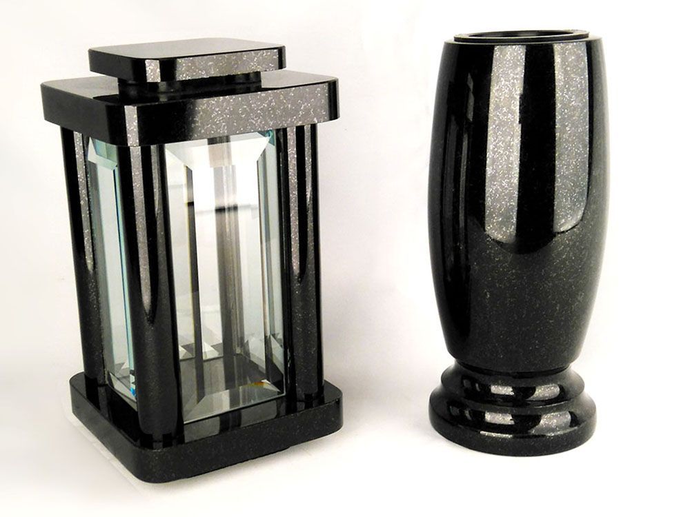 designgrab Set Grablampe Modern 25,5 cm mit Grabvase Classico Medium 25 cm aus Granit