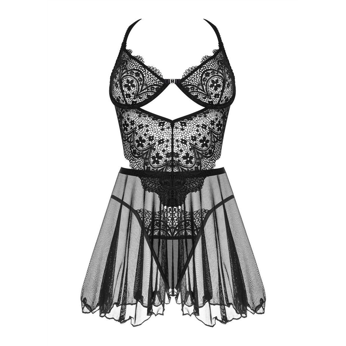 Dessous-Set Chemise und Slip halbtransparent Dark Mirage schwarz