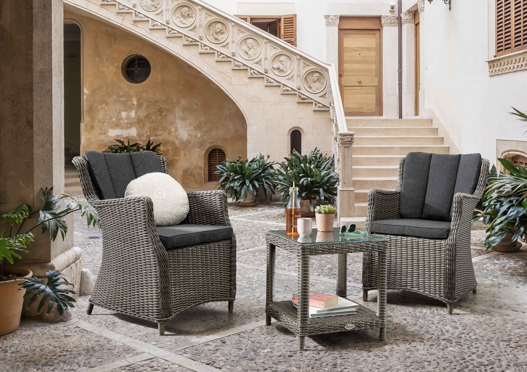 Destiny Destiny Balkonset LUNA MERANO 2 Sessel + 1 Beistelltisch 46x46x50cm vintage grau