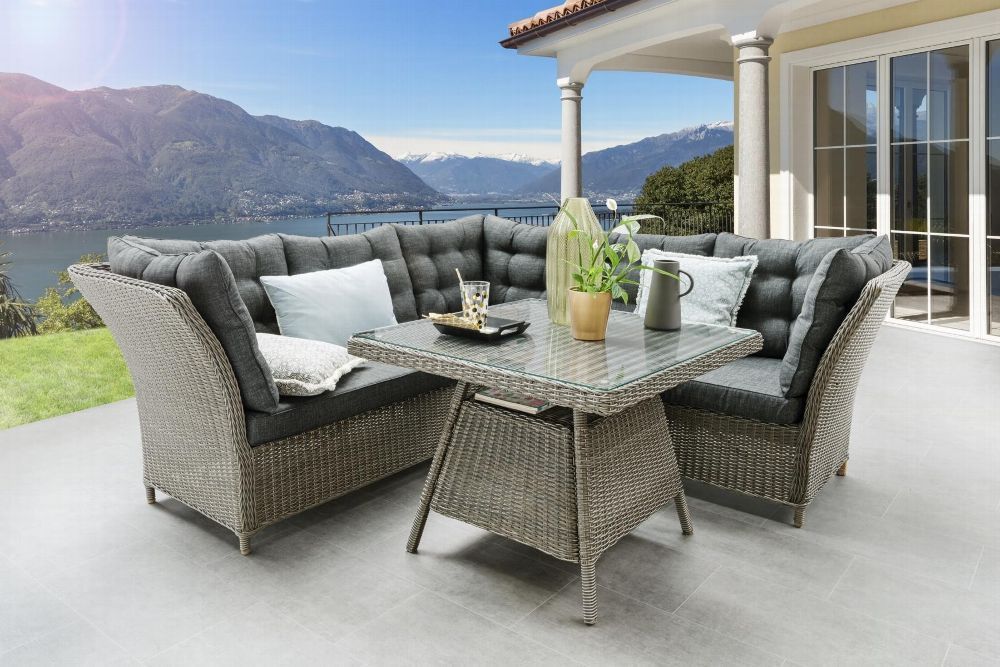 Destiny Destiny Eckgruppe PALMA, Tisch 90x90x67cm, Polyrattan, vintage grau