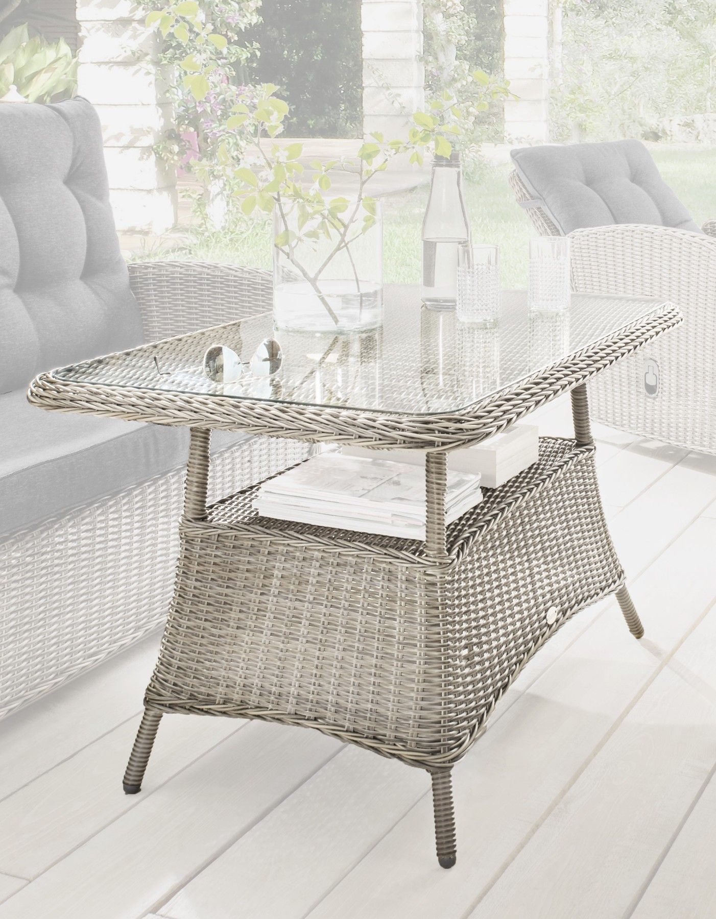 • Poly-Rattan Gartentisch Halden, Beistelltisch Tisch mit Glasplatte